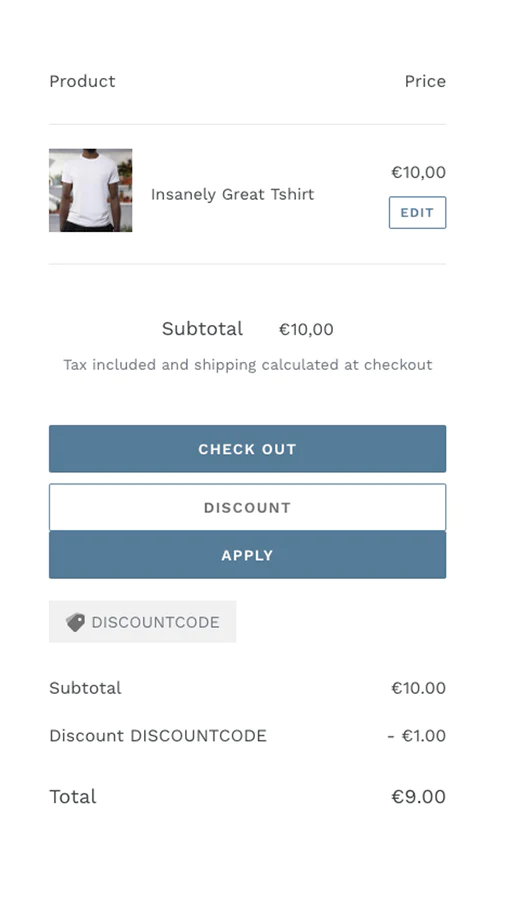Discount field before checkout : Make it easy for your customers to redeem their discount by adding a discount field to the cart page (or any other page) of your store.