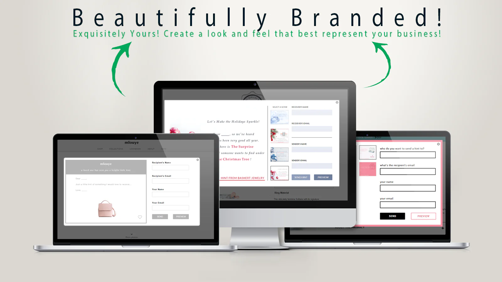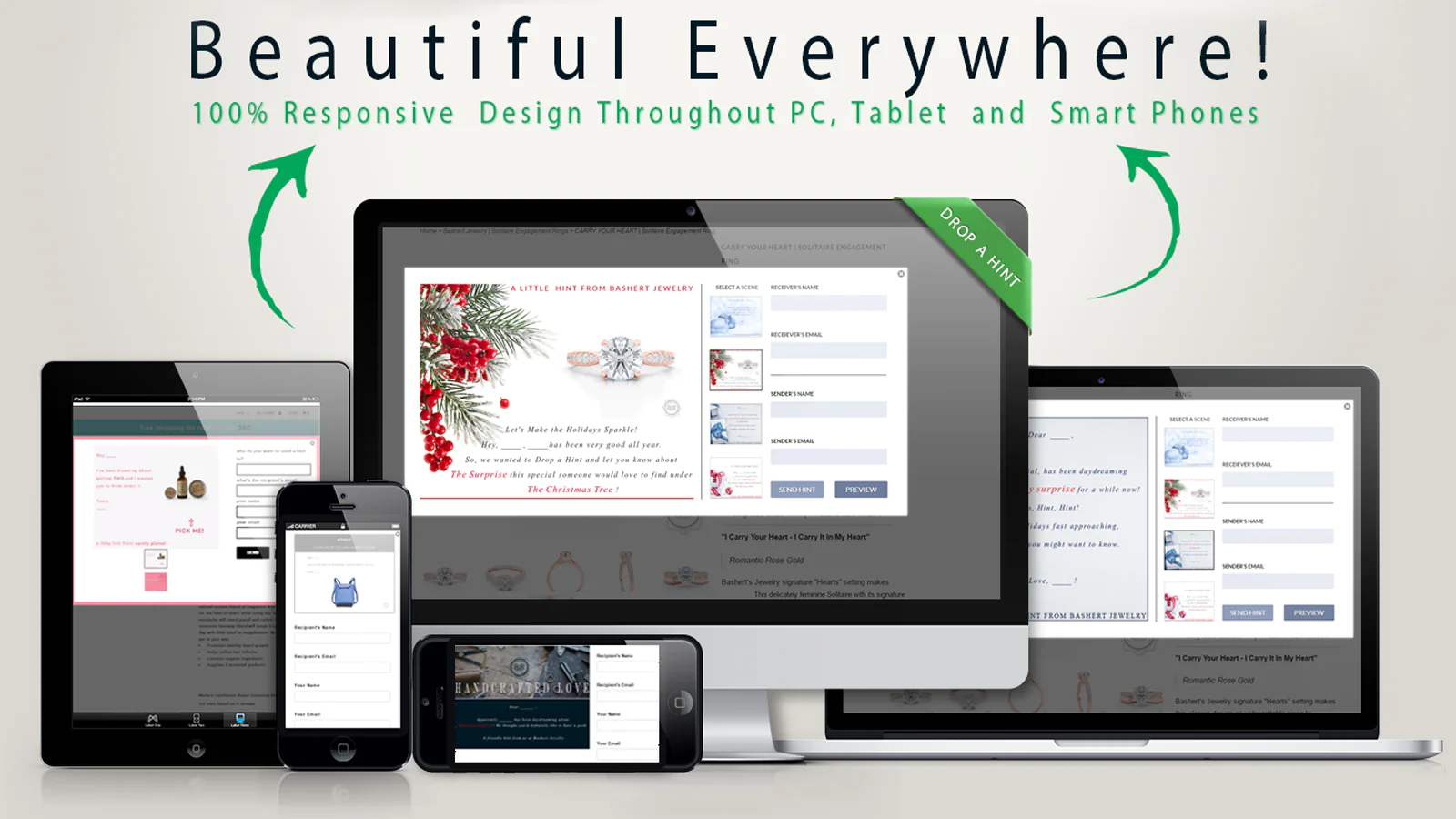 "Drop a Hint" displays under/next to "ADD TO CART" button, that allows your customers to send an Electronic Hint Card to a person of their choice. The Hint Receiver gets a styled Hint Card, that is a live-link to the exact product/size/color the browsing visitor "hinted".