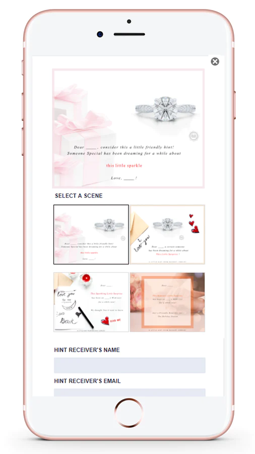 DROP A HINT. GET WHAT YOU WANT : Our app allows visitors to Send "Hints" via e-mail to a person of their choice! The app captures both emails and doubles your email list.