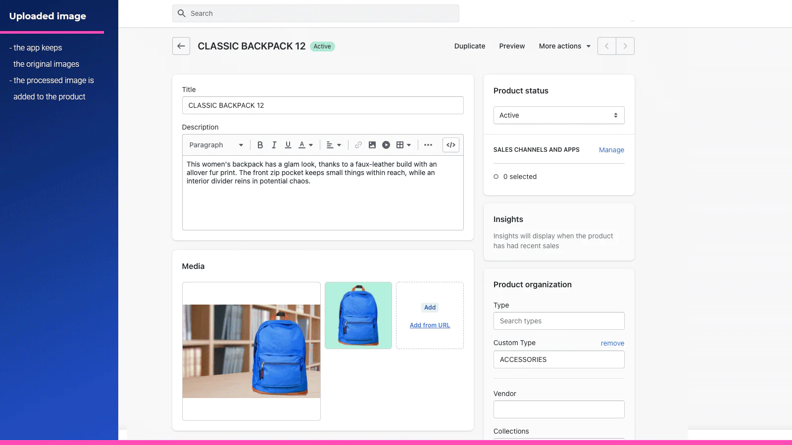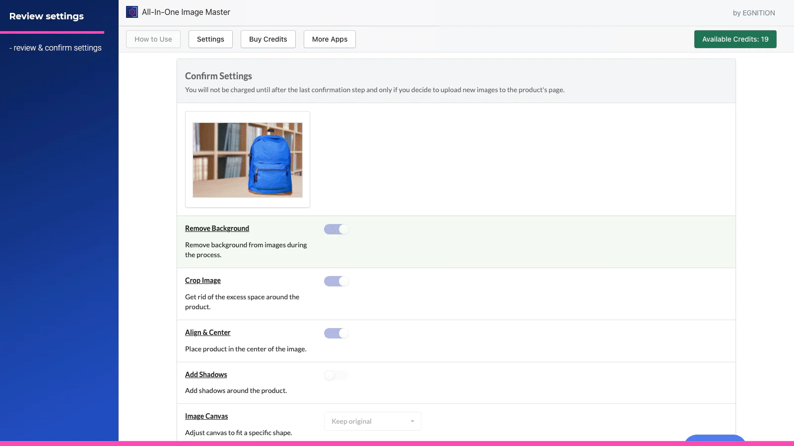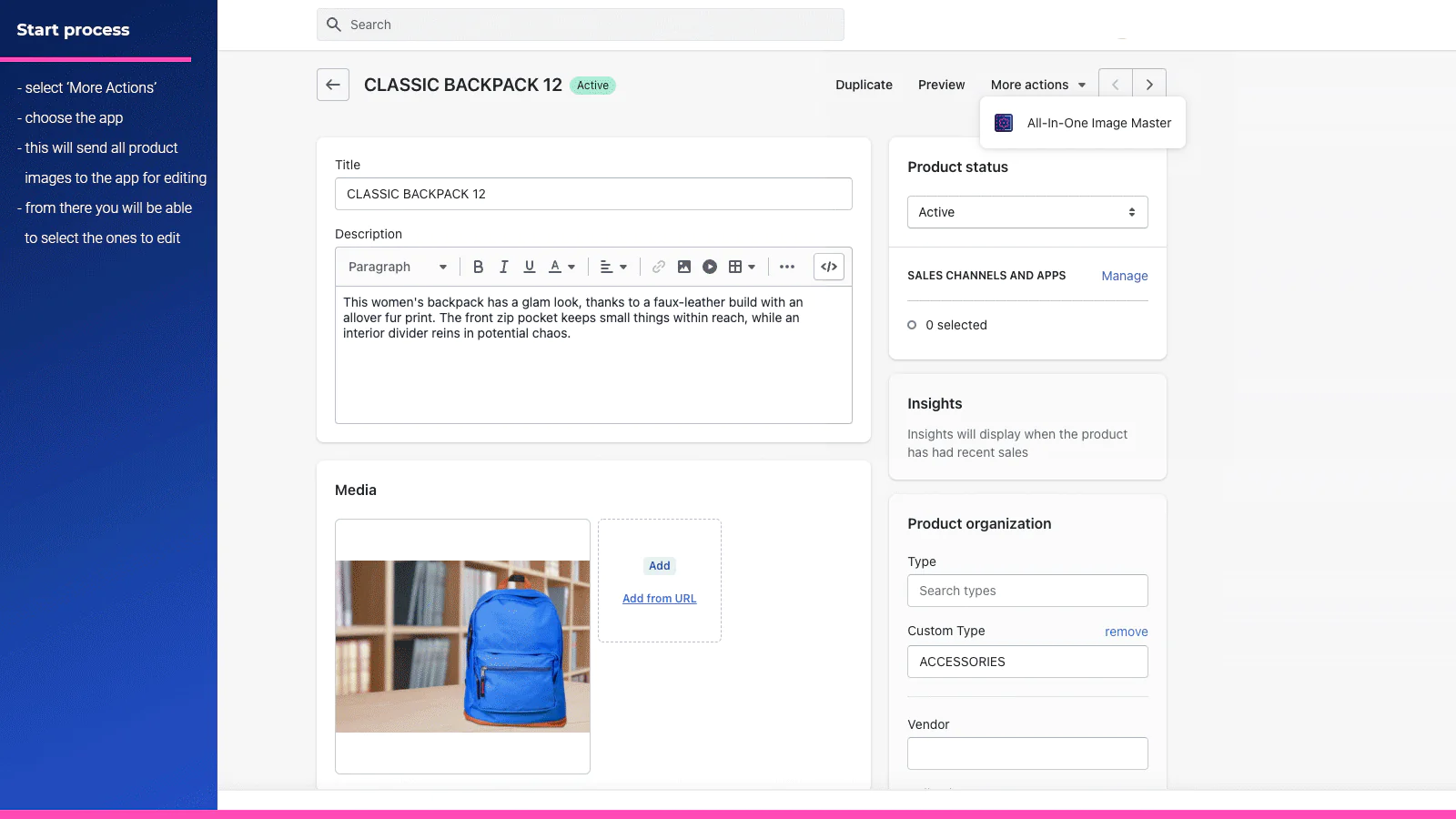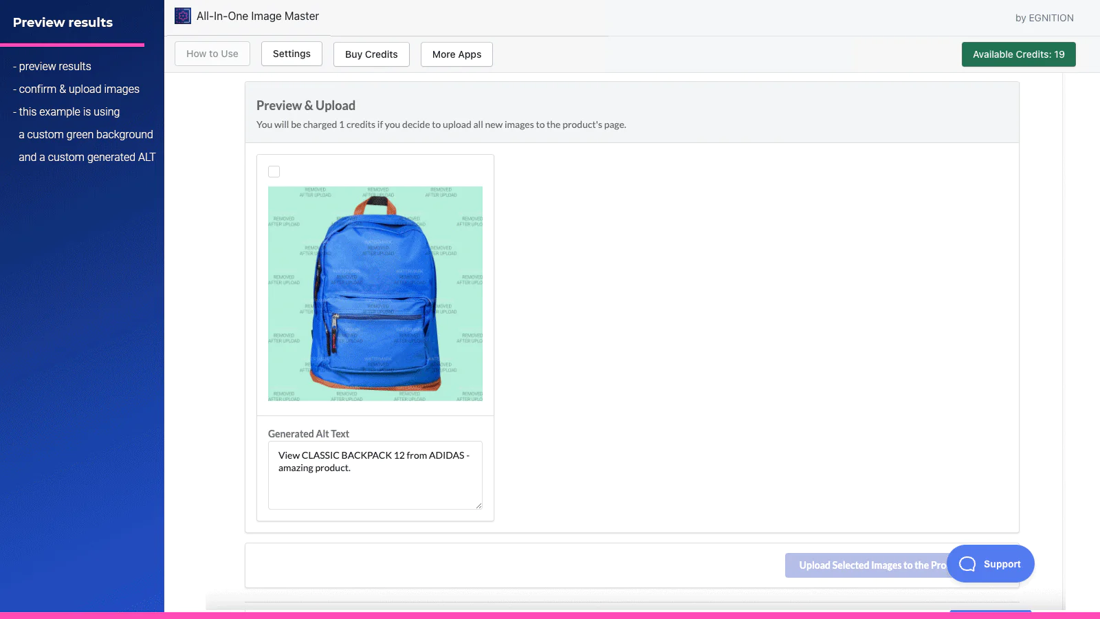 Are you still editing product images manually? Try All-In-One Image Master because it will help you edit images quickly, automatically, and in several clicks. The app will upload new images back to the products page when done editing.