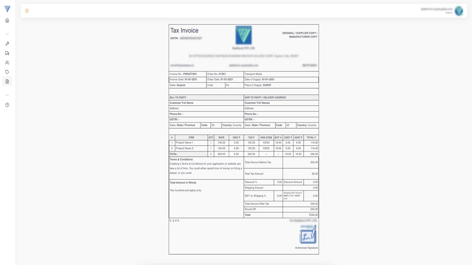 Generate GST invoices without importing your order data into third-party software with the GST app. hassle-free, reliable & efficient, this app helps in generating GST compliant invoices with ease without using third party software or importing data.