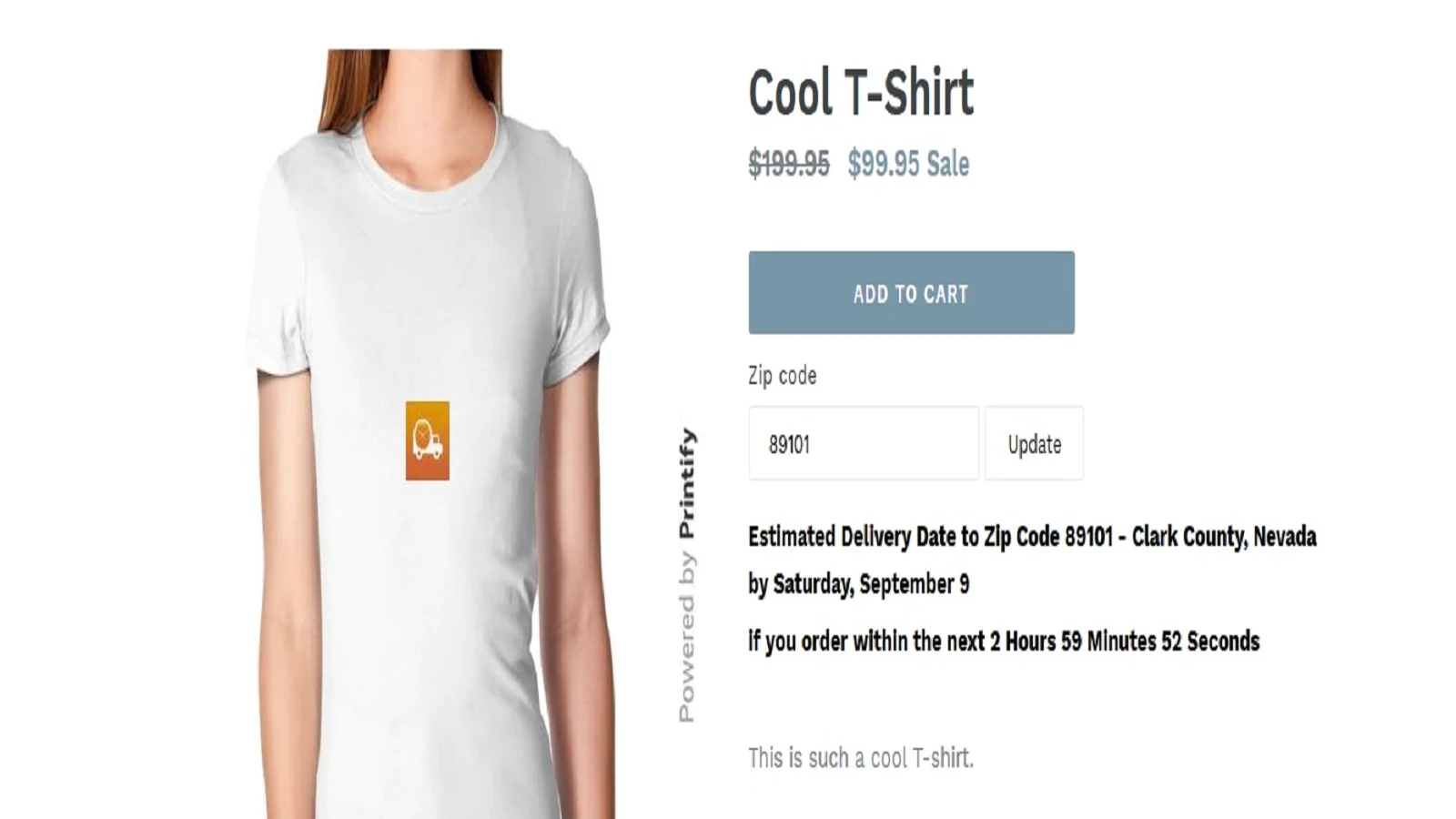 Internet shoppers want their items as fast as possible - they are far more likely to buy something if they know it’ll arrive on time. This app will add the estimated delivery date on your product page and give buyers accurate delivery estimations based on their IP address or ZIP code.