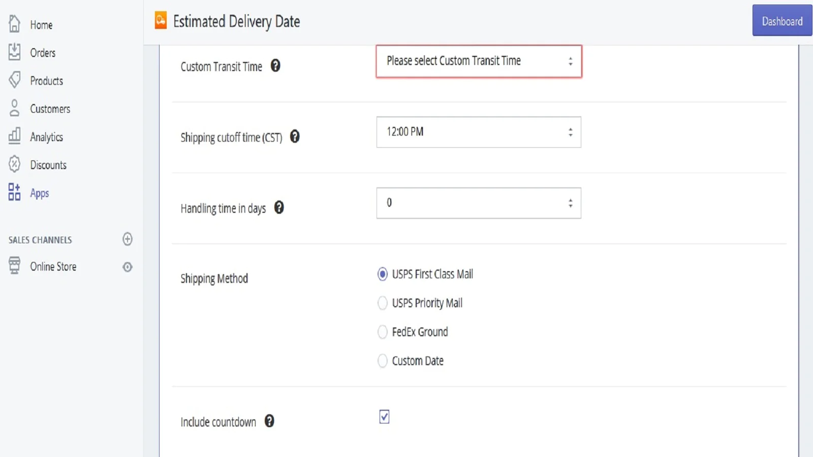 Using Estimated Delivery Date, you’ll be able to add an optional countdown timer to the product page to inform customers when they should order by if they would like to receive their product by a certain date.