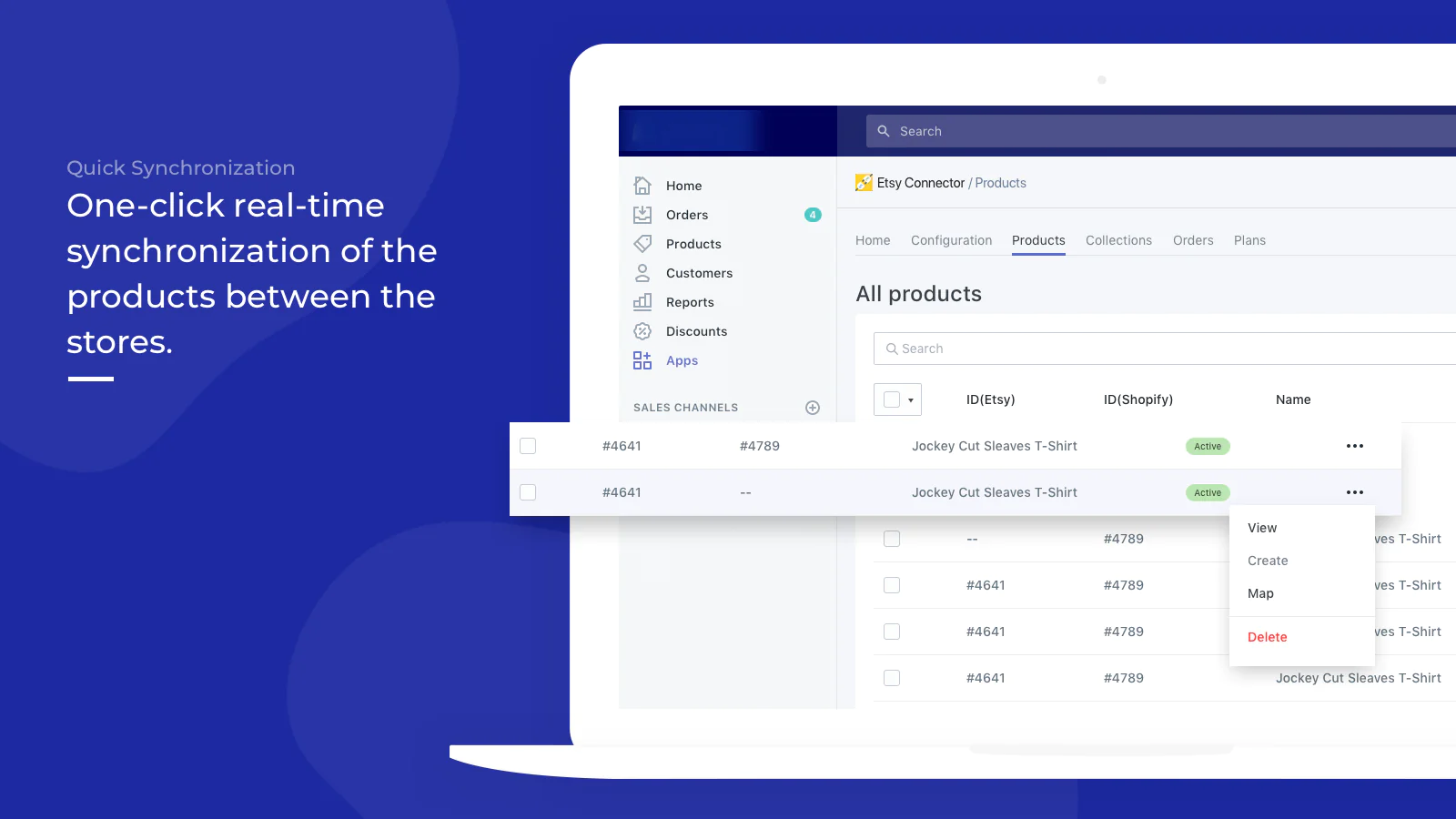 The Etsy Connector app enables Shopify users to integrate Shopify with Etsy. You can list Etsy products on your Shopify store and attain organized product and inventory management.