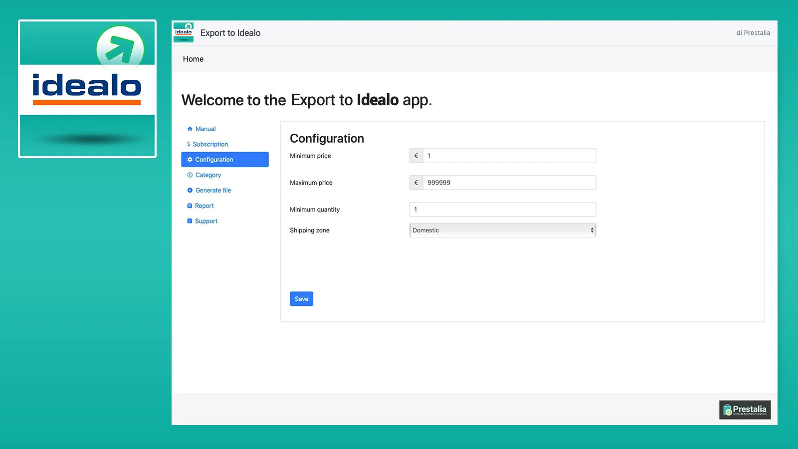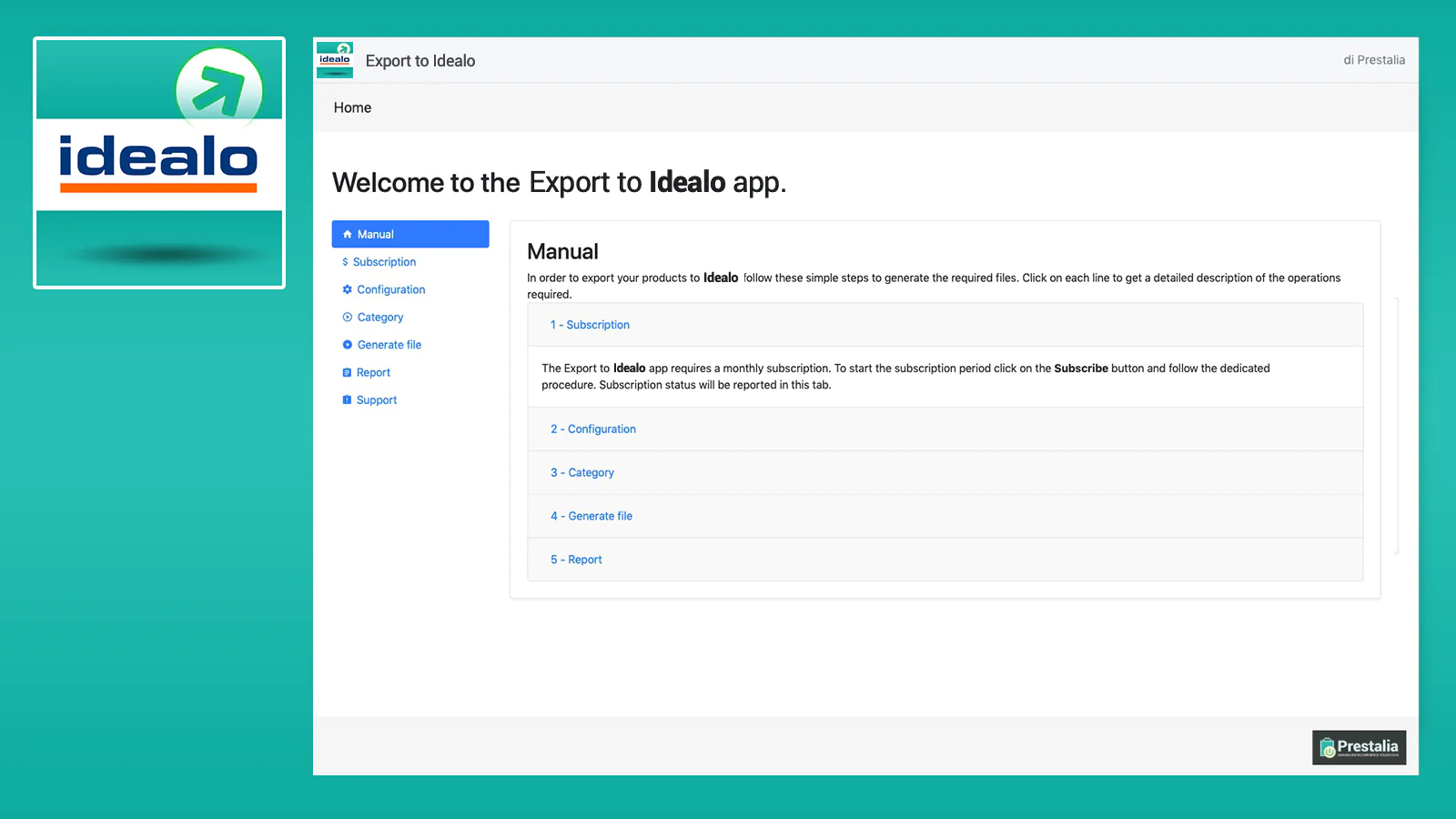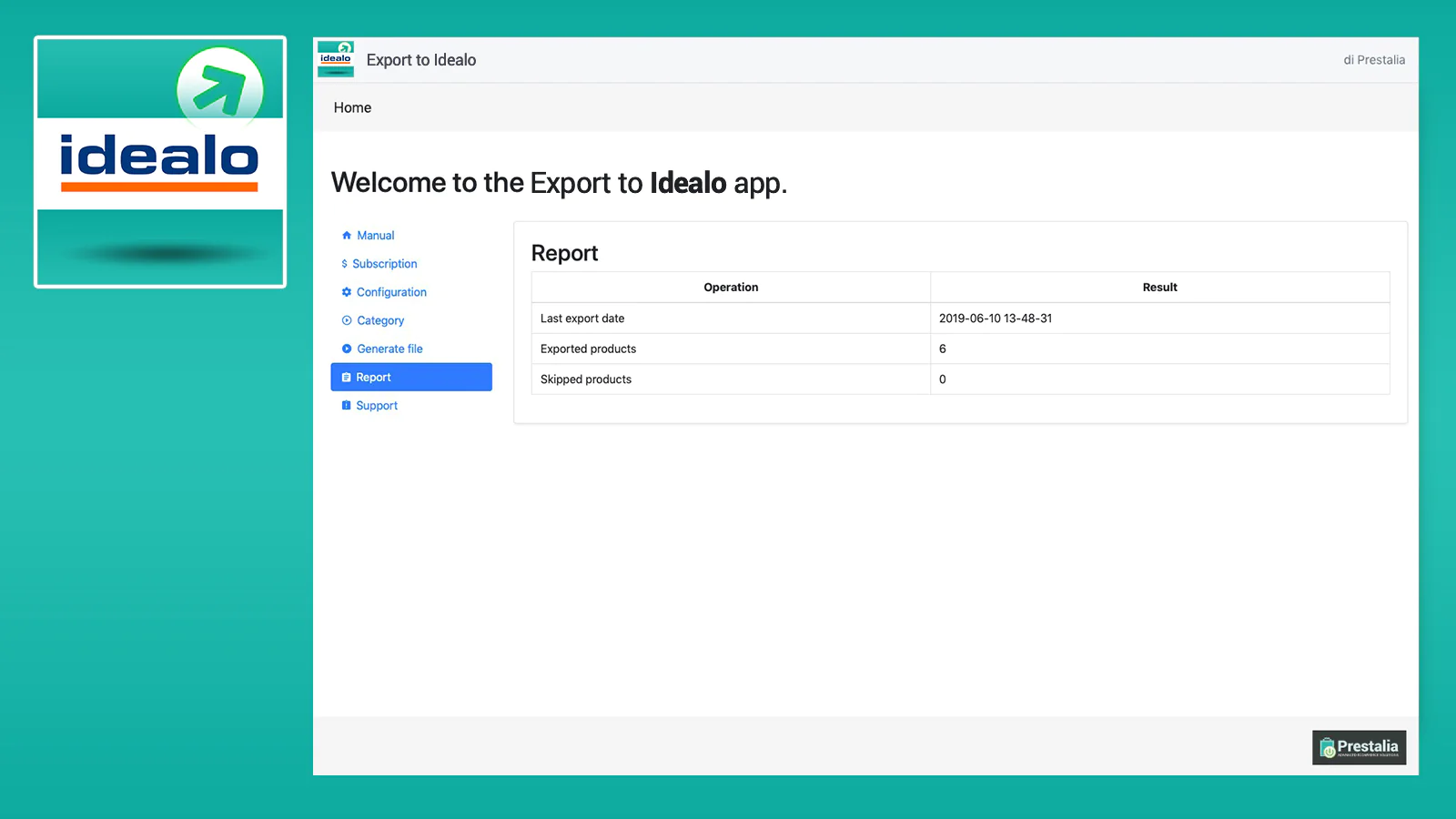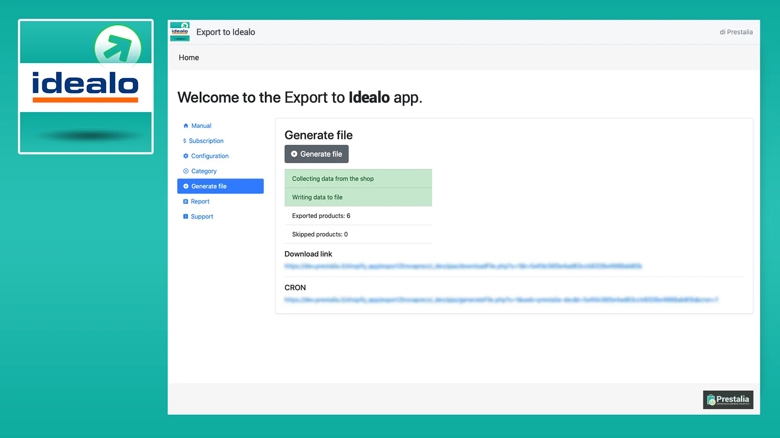 • Create Idealo CSV file directly from your Shopify backend • See the last generation report • Updates automatically or with the easy 1-Click update function. • Obtain the CSV link to provide to Idealo