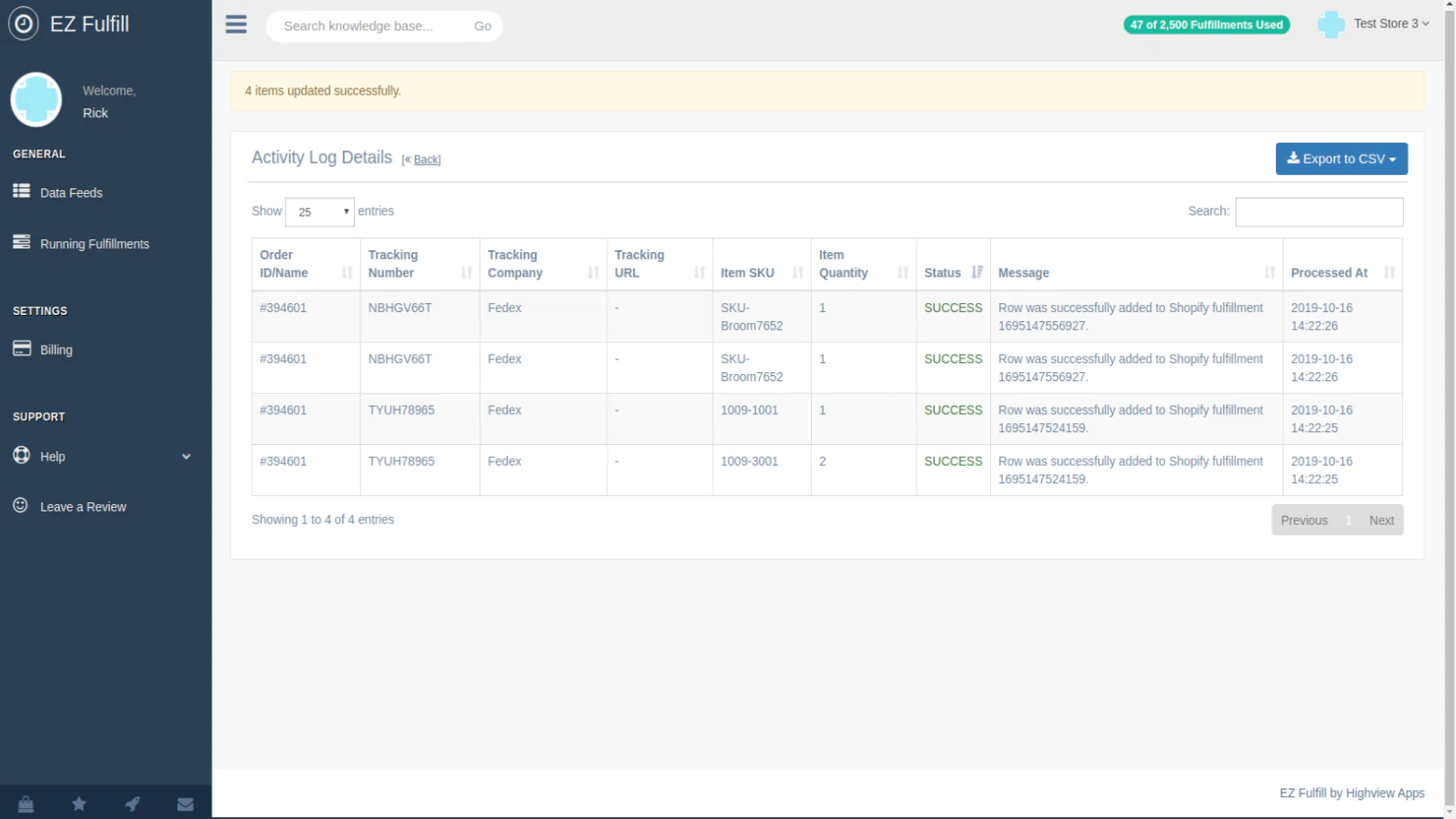 Stop wasting time manually updating your tracking numbers! EZ Fulfill's scheduler allows you to update your orders tracking numbers, mark your orders fulfilled and send tracking confirmation emails directly to your customers as frequently as every hour. You can even add tracking numbers to orders already marked fulfilled! Automating your fulfillment has never been easier!