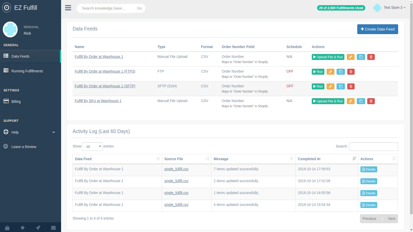 Our app supports data feeds and scheduling via FTP, SFTP, Dropbox & Amazon S3 as well as manual file uploads.