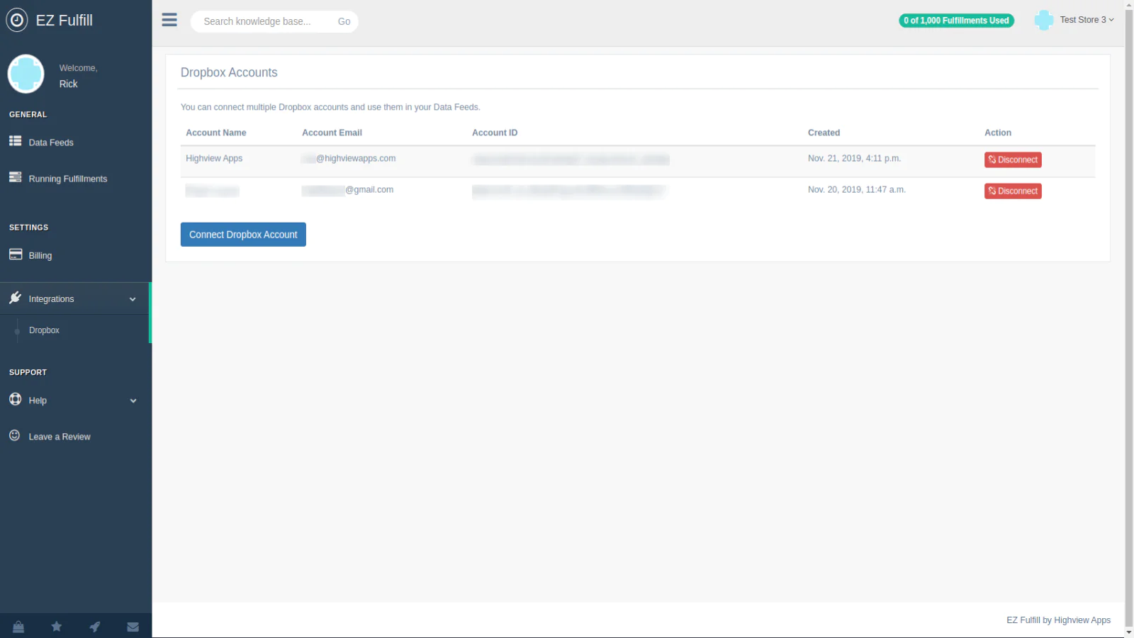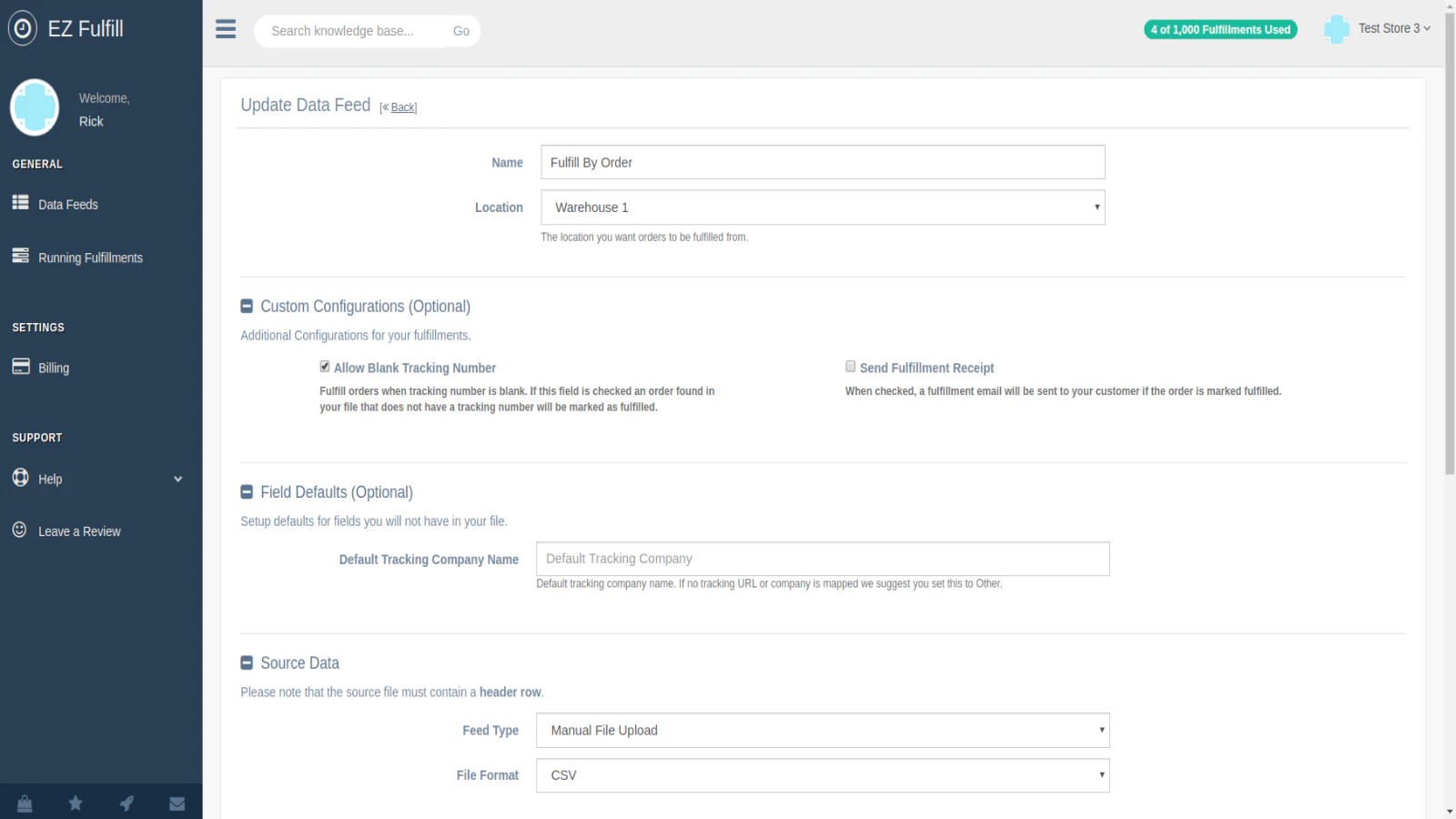 FTP/SFTP, Dropbox, S3 Support : Sync your fulfillments from an FTP/SFTP, Dropbox or Amazon S3 feed. Update your tracking numbers via FTP. CSV files supported!