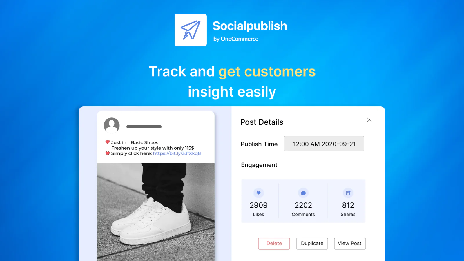 Socialpublish was developed by OneCommerce - a leading eCommerce Solution Platform trusted by 181,000 global merchants. With this robust app, you only need a few minutes to schedule and post automatically on social media channels like Facebook and Twitter.