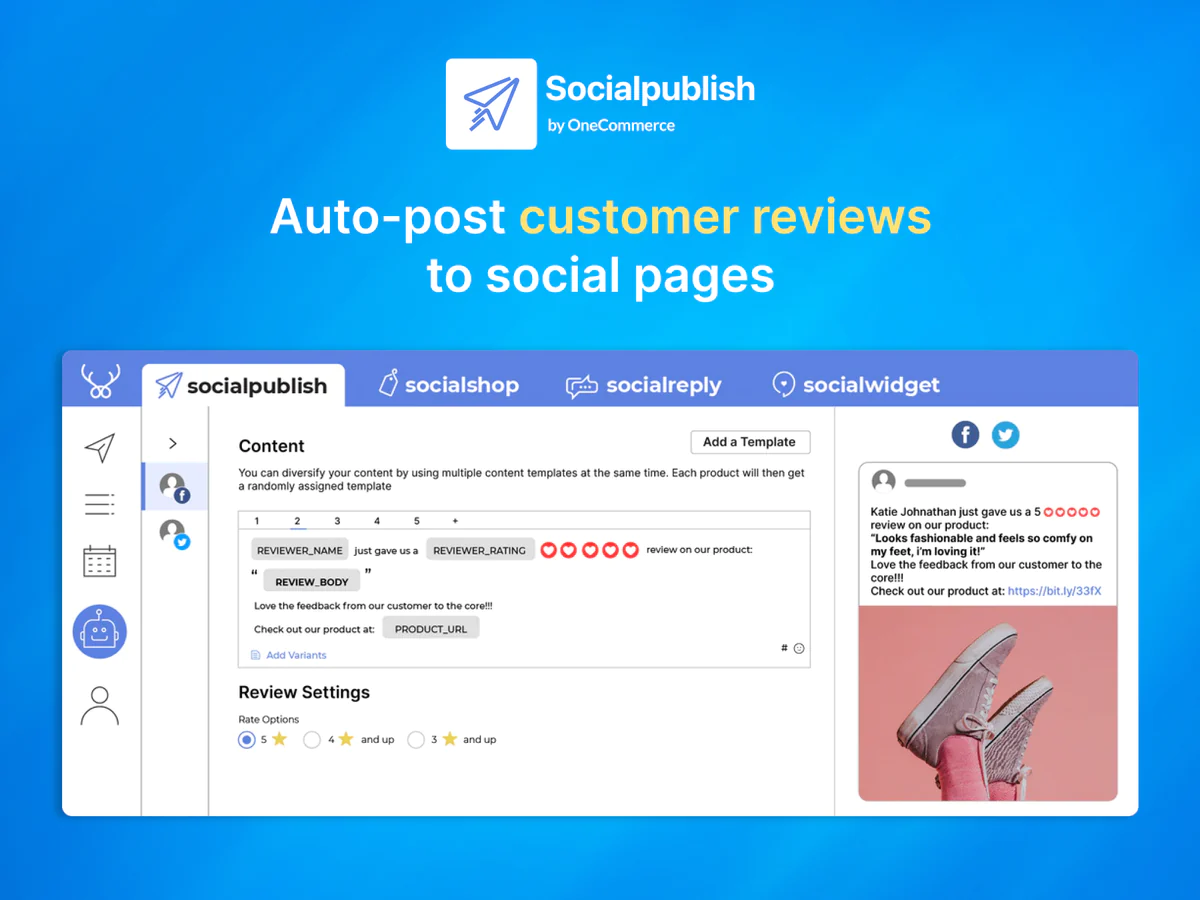 Auto-post customer reviews to social media to build customer trust and grow sales