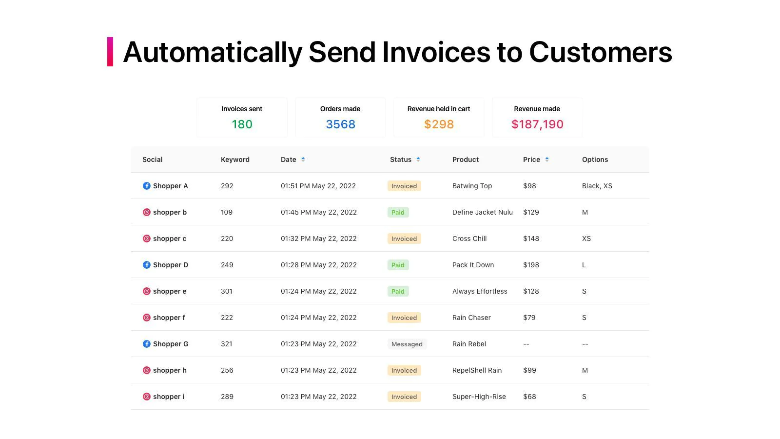 Integrated with Shopify : Automatically cart orders when shoppers comment. All products, orders, checkout, and customer information sync with Shopify
