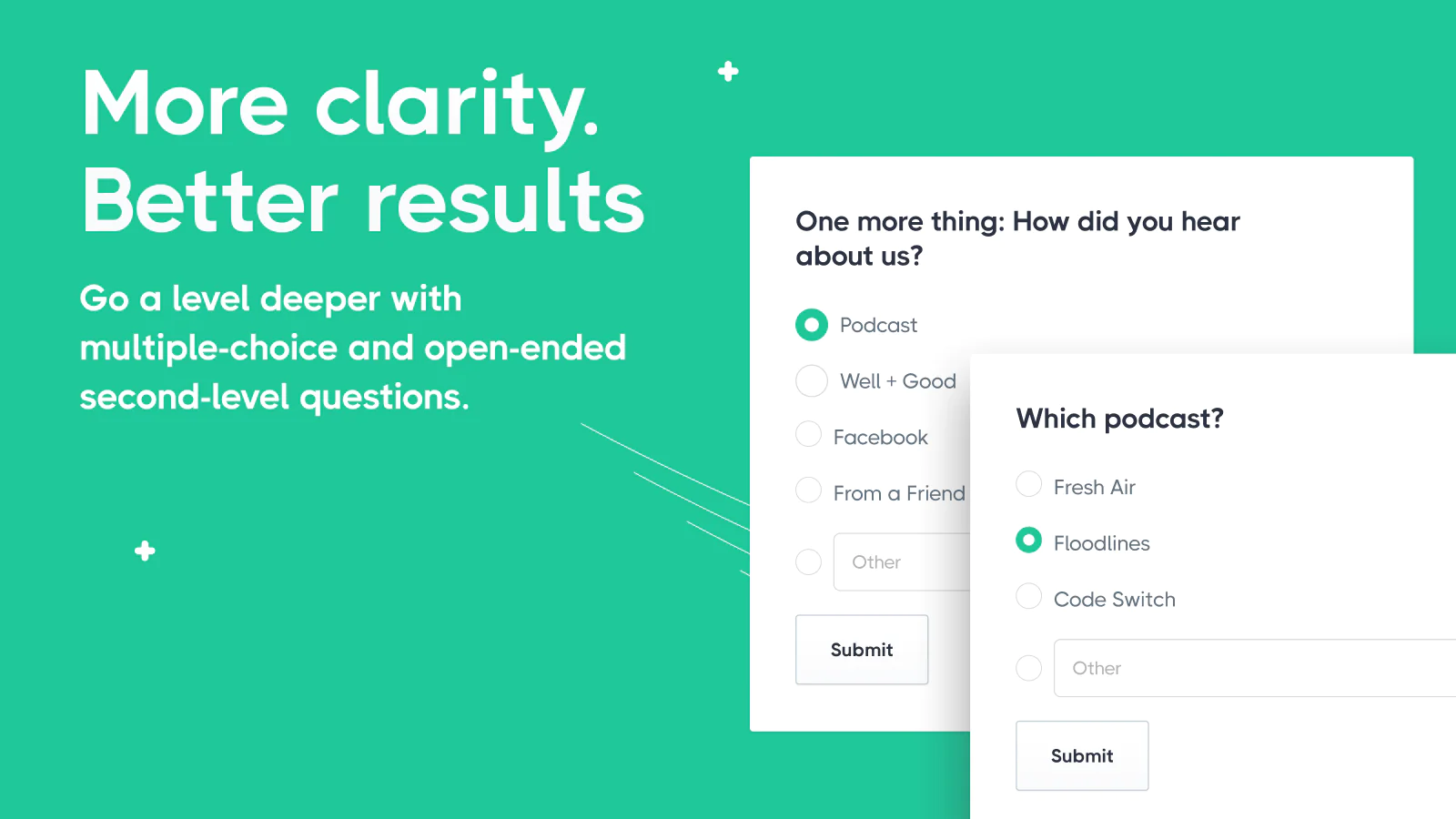 Post-Purchase Survey Questions : Seamlessly branded post-purchase surveys, generating massive consumer insights to inform and automate business decisions.