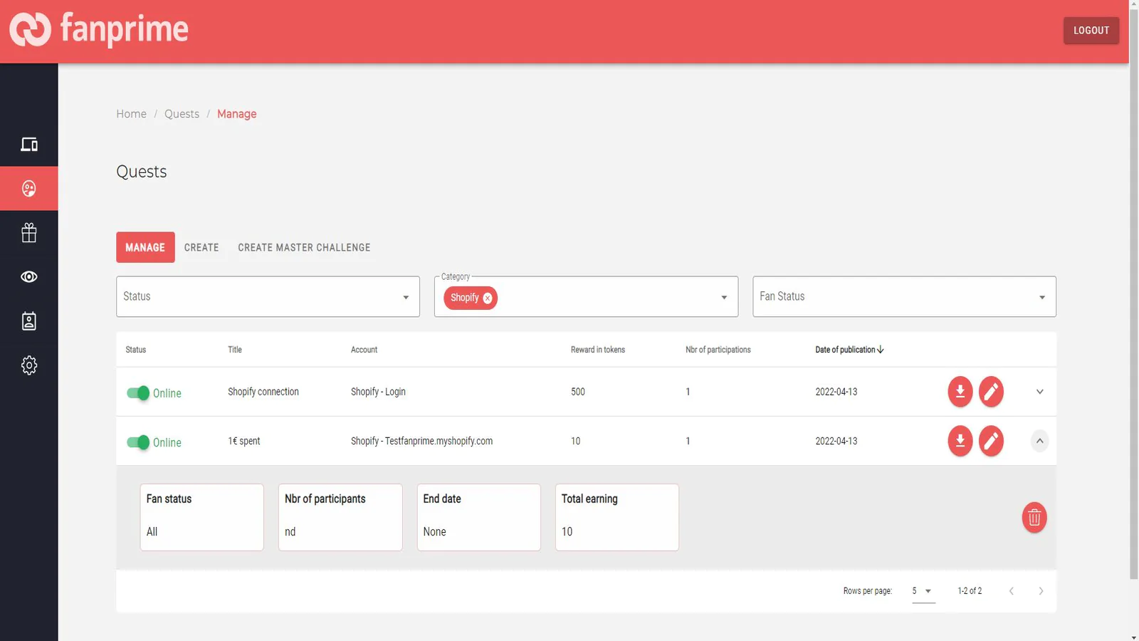Fanprime App enables brands to reward purchases done on their Shopify store.