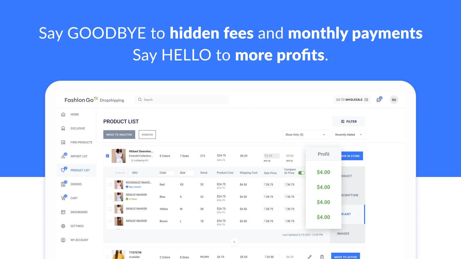 HASSLE-FREE AUTOMATED PLATFORM : With a single click, easily add FashionGo products to your store, giving you more time to focus on growing your business.