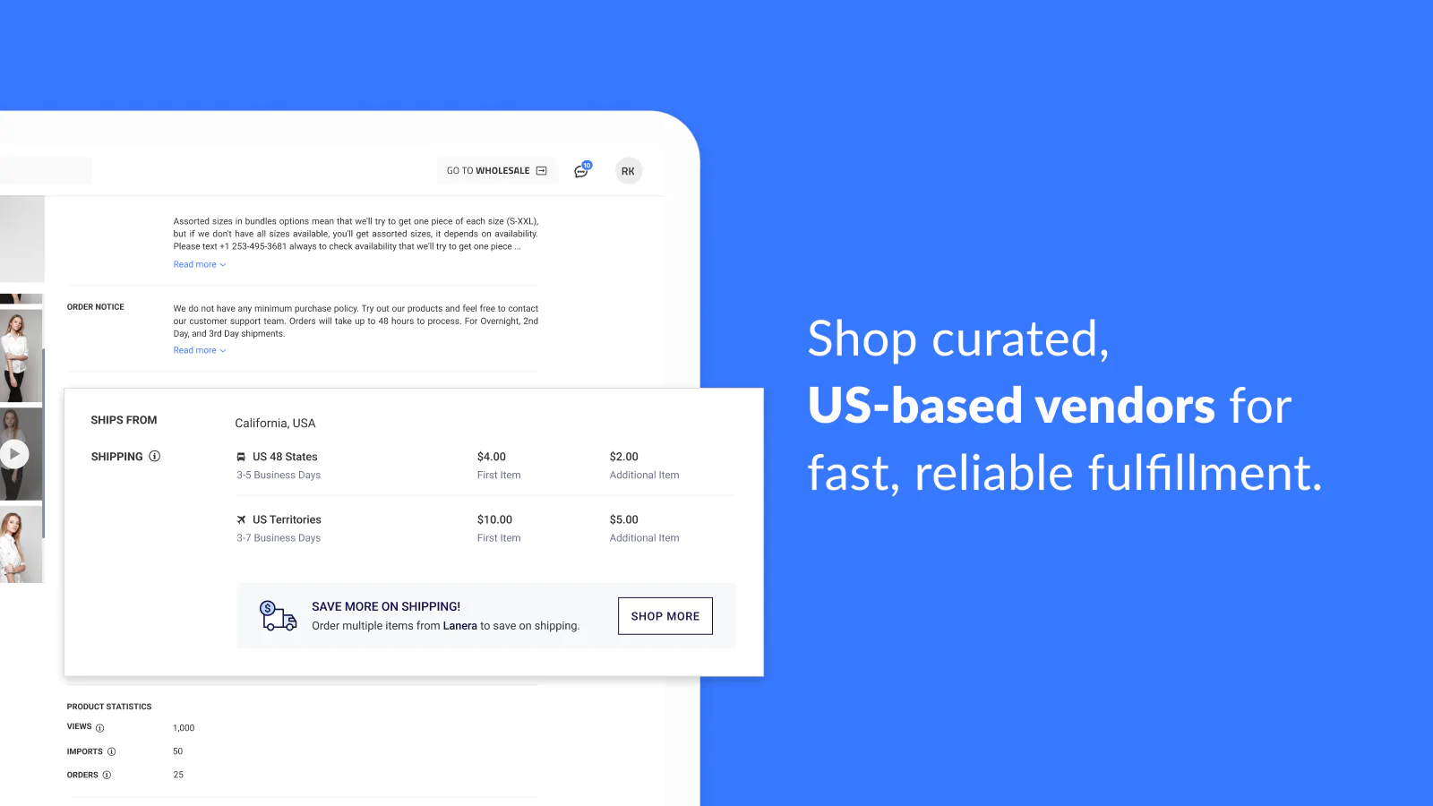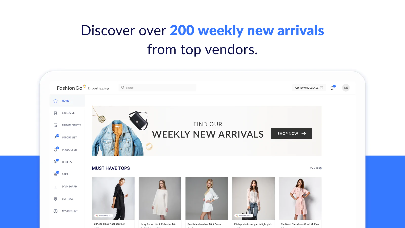 QUALITY US VENDORS : FashionGo vendors are thoroughly screened to deliver you a high quality dropshipping experience. Products are on-hand in the US.
