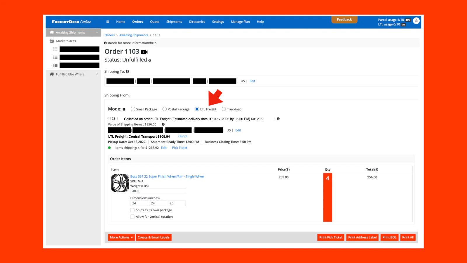 Multiple Shipping Modes : Compare rates and transit times. Create truckload, LTL freight, parcel, and postal shipments all on one shipping platform.