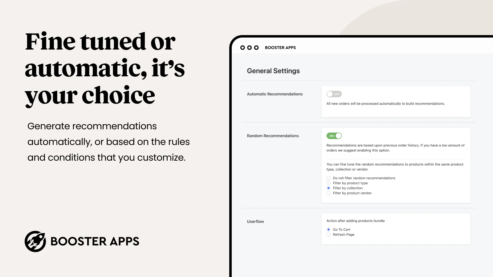 In just one click - the app will show a widget to increase sales from your product pages. We calculate recommendations based upon order history and customer purchasing habits.