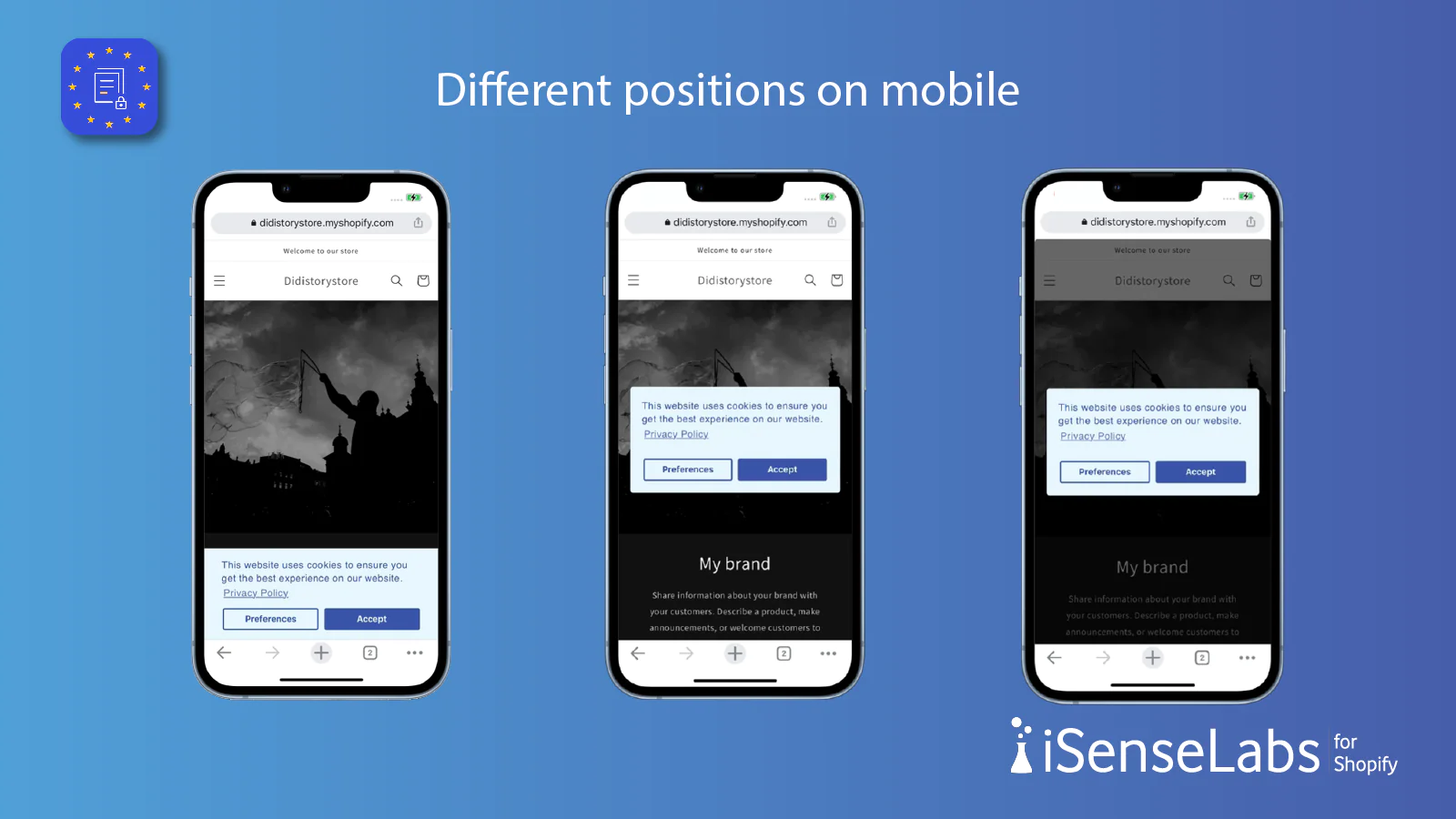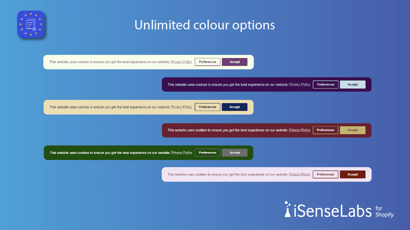 Cookie Consent Bar : Display a banner requesting customers’ consent on using cookies in the store. Fully customizable - colors, positions, buttons, texts, etc.