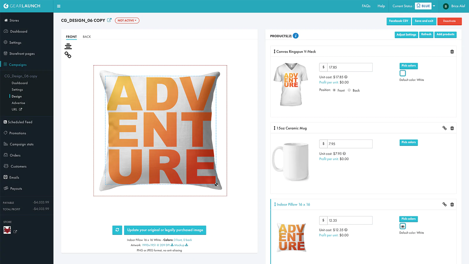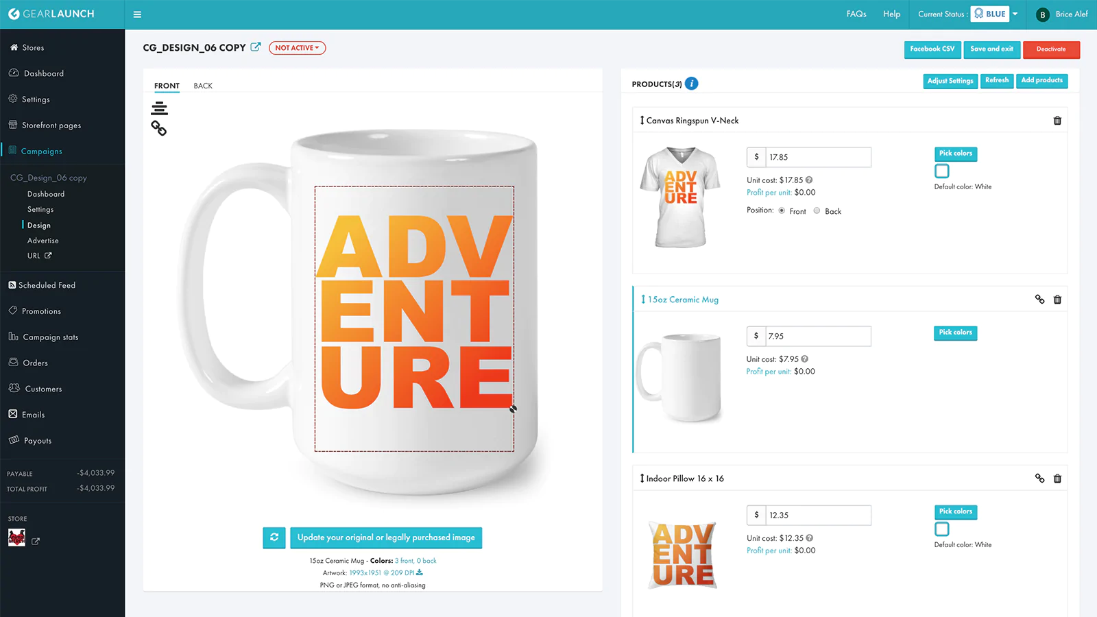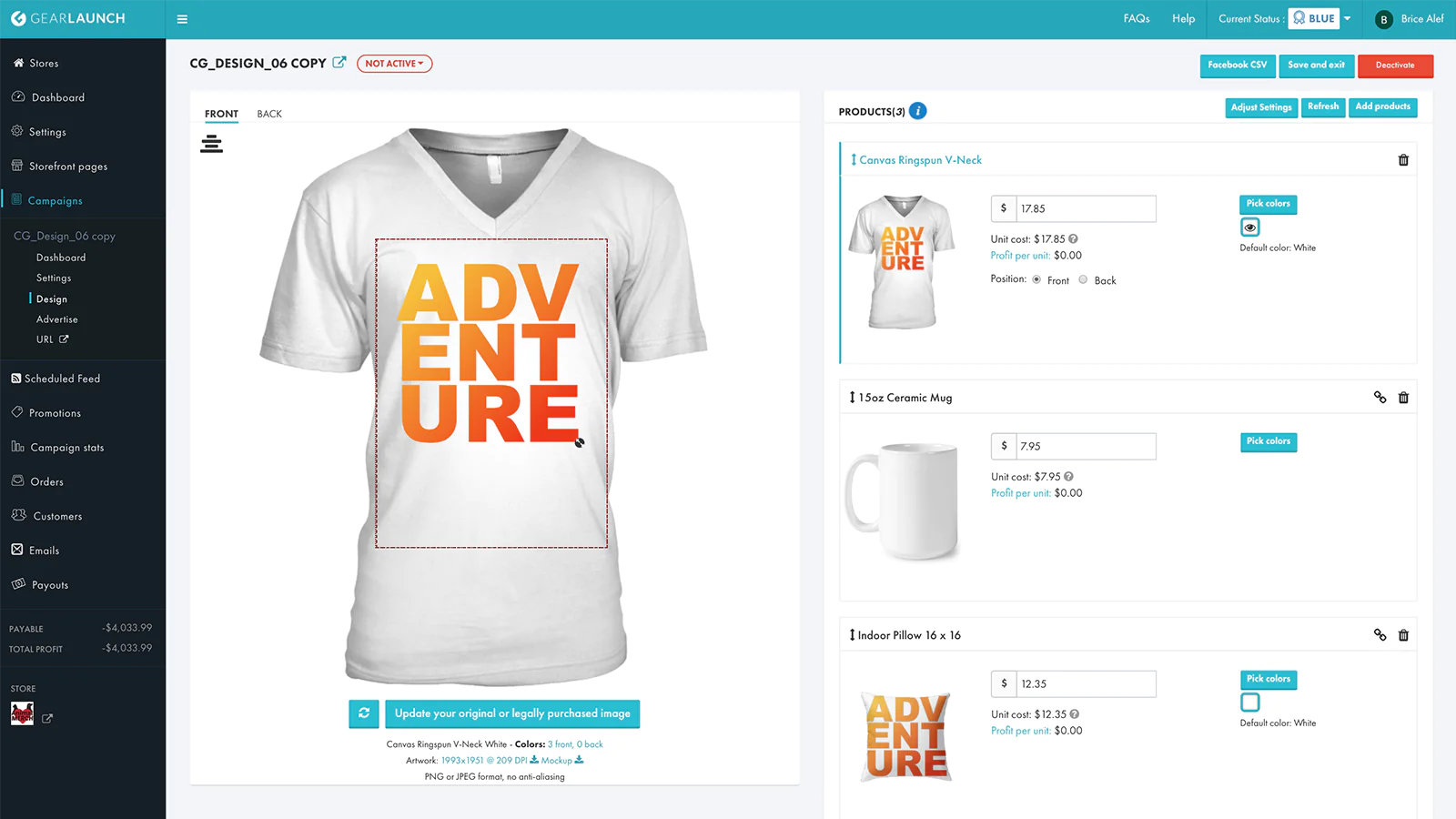 WE PRINT IT, WE SHIP IT : Don’t worry about managing Inventory. We will print and ship your products directly to your customers.