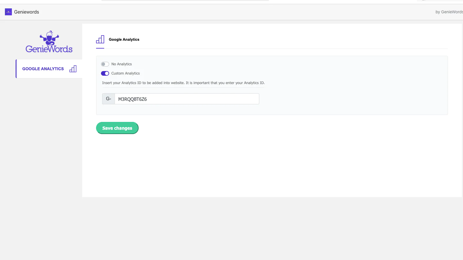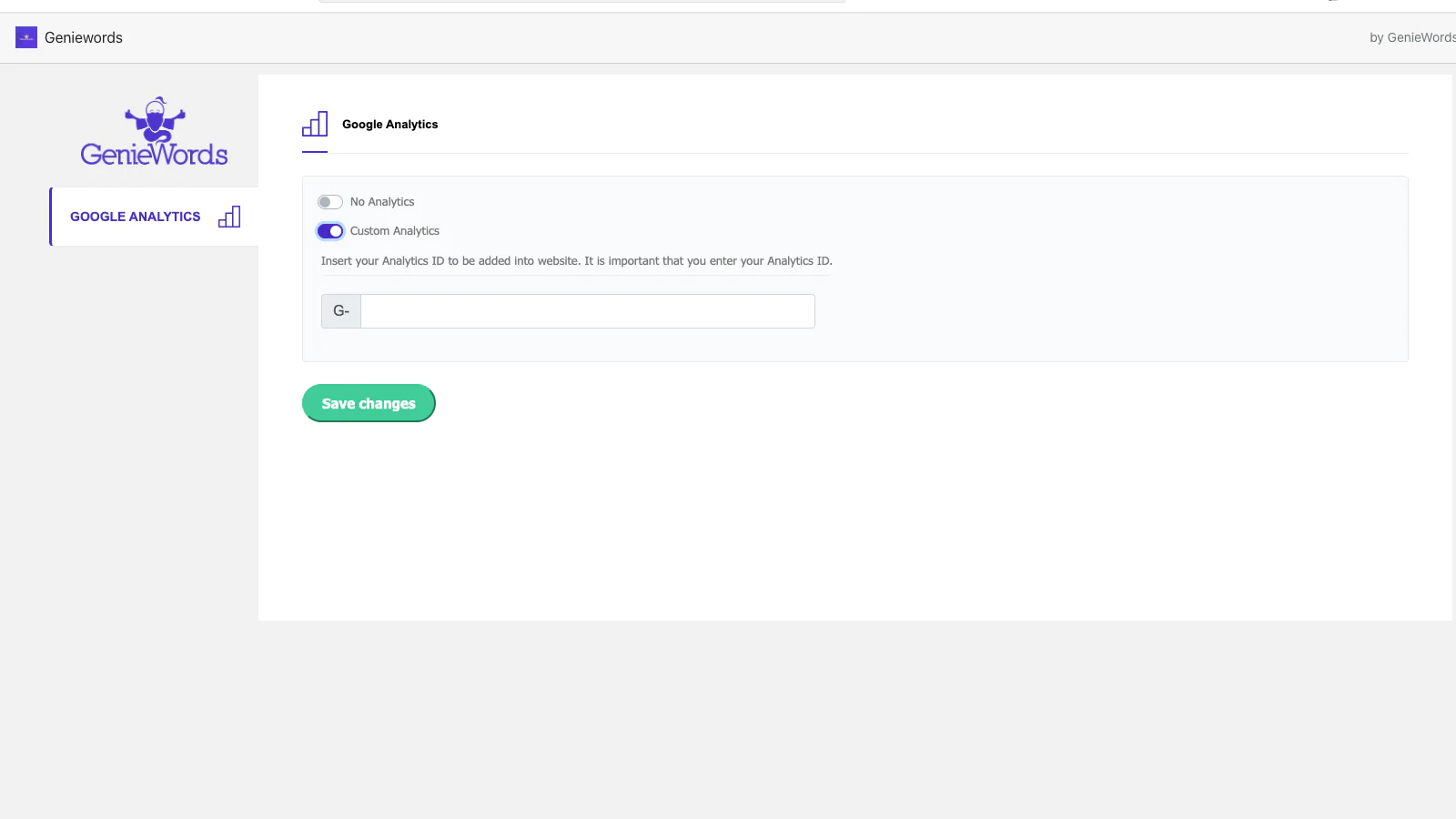 In our Google Analytics module you can choose whether you want our app to install a Google Analytics code on your website or not. If you do want to, you just need to insert your Analytics code.