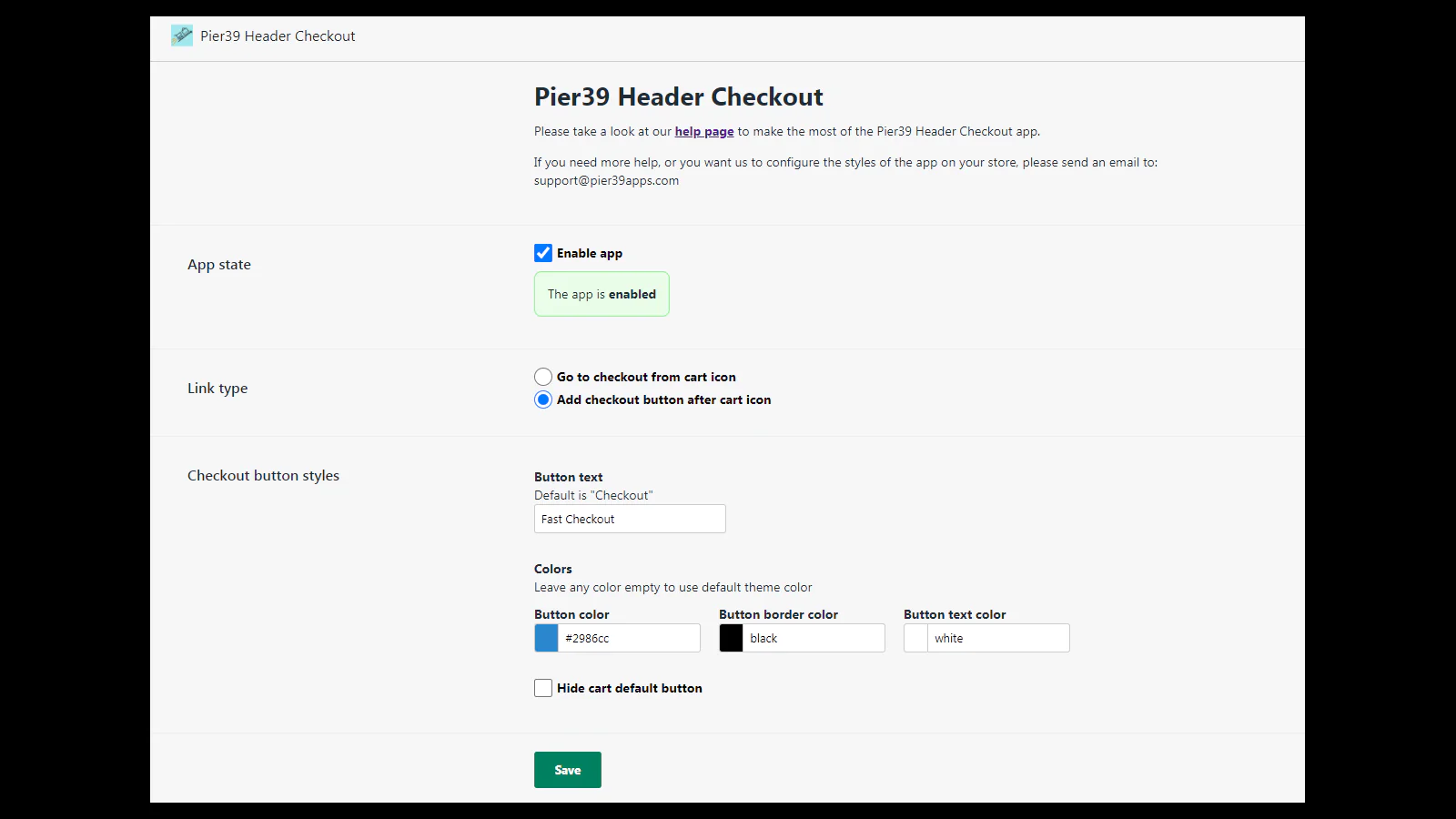 If you configure our app to add a checkout button, it will be shown right after the header cart icon with the styles of your store theme. In addition, you can also modify the button text and customize its styles by modifying the background color, the border color and the text color.