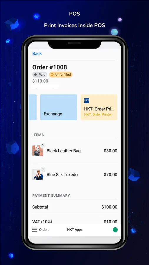 By copying a link from HKT Apps and pasting it to your email notification or your online store, your customers can print and download their invoices. It is automated, saves time for you and your customers.