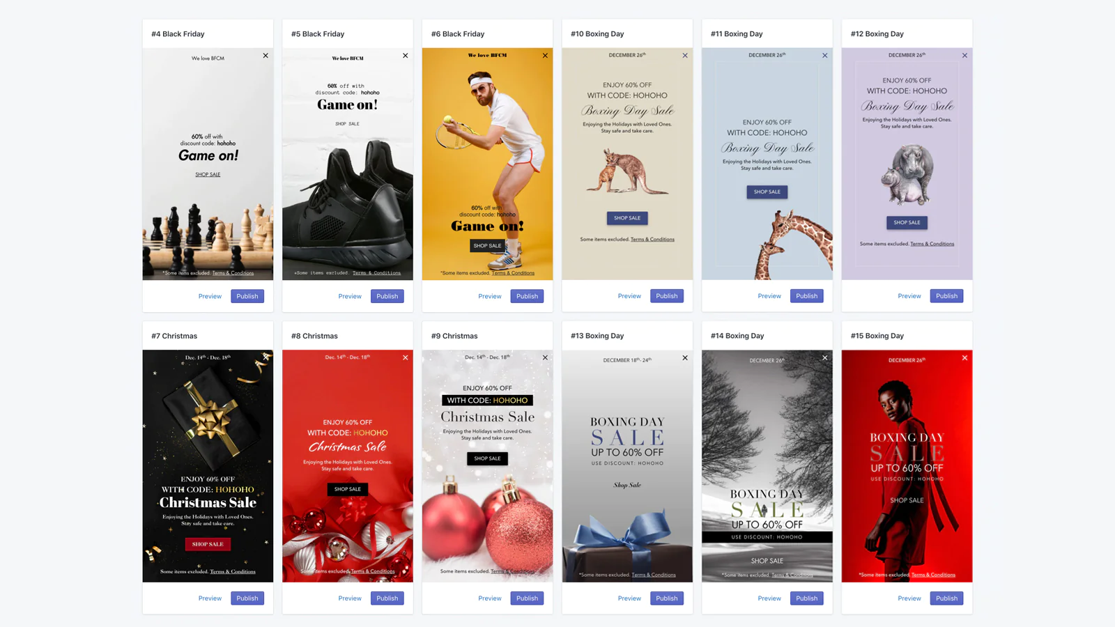 We love the Holidays and put passion into creating sale templates for use during the Holiday season. Black Friday, Christmas, and Boxing Day, we are sure that you will find something suitable for your next sale.