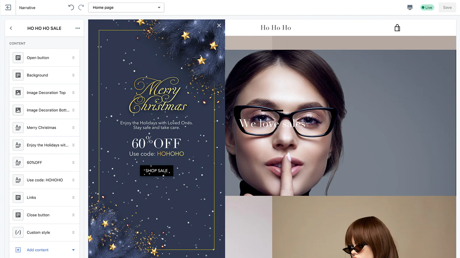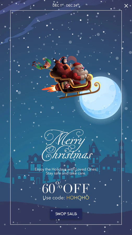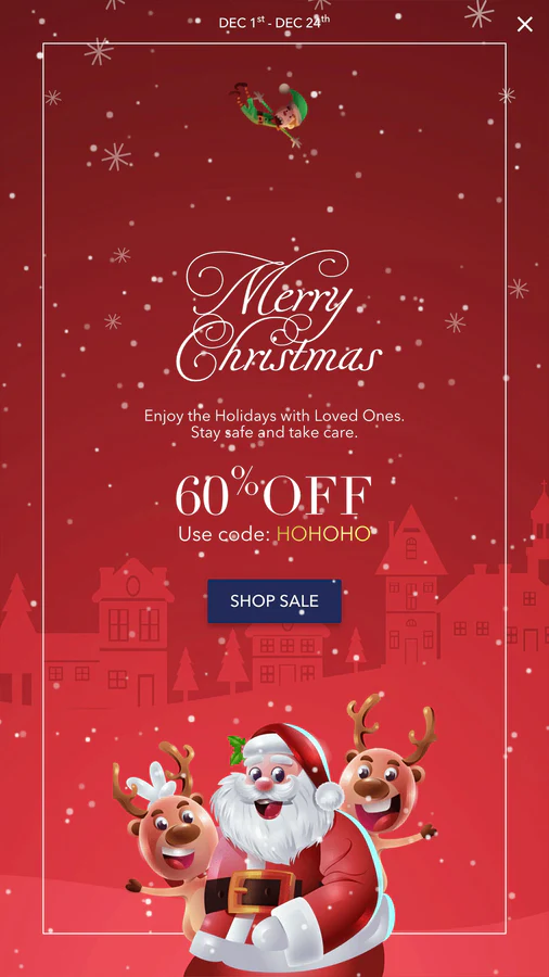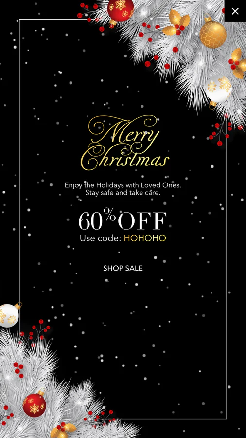 Ho Ho Ho Sale Announcements app helps you showcase sales and discounts coupons using beautifully designed Black Friday, Christmas, and Boxing Day pop up banners.