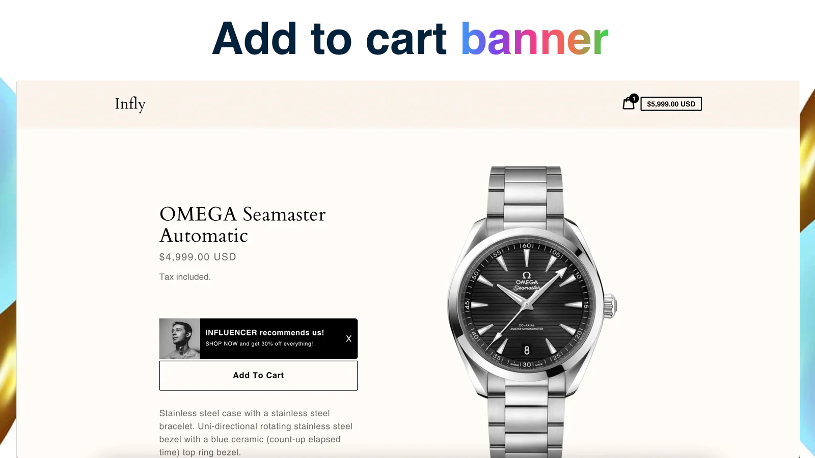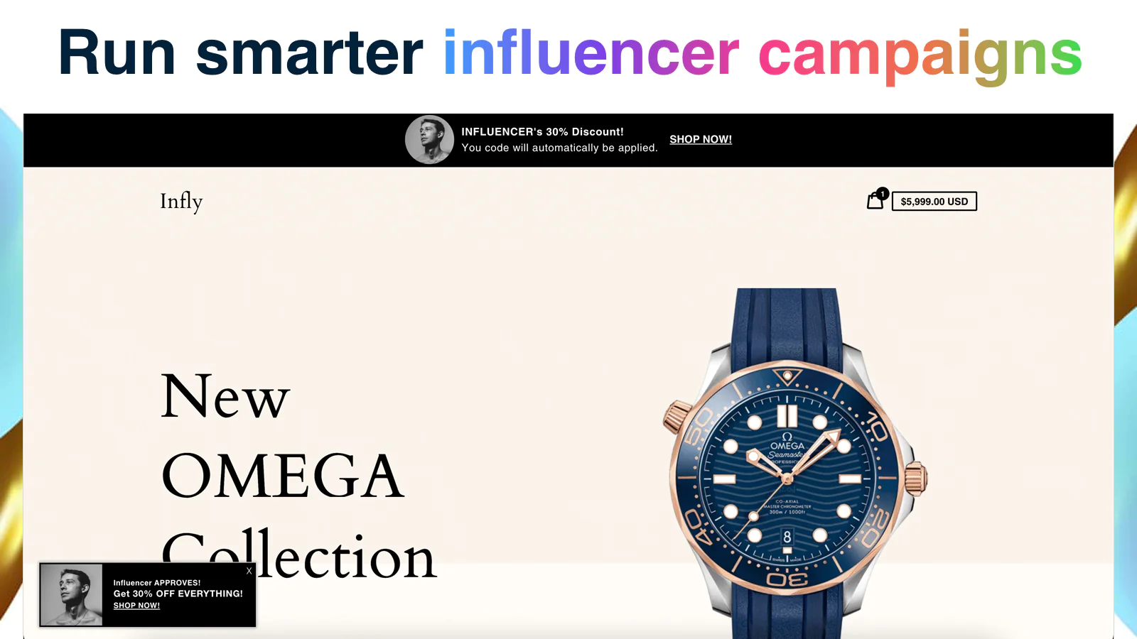 Take your marketing to the next level. We all see sponsored posts, either on Facebook, Instagram or Google ads, etc... to get the products out there. Well with Infly you can create special banners dedicated to a link, that link can be dedicated to an influencer or even a bundle of influencers in a 'club' or for any special sale like Black Friday or Cyber Monday, the custom link will open your store, with banners specifically designed for that influencer, event, sale or anything else you can think of.