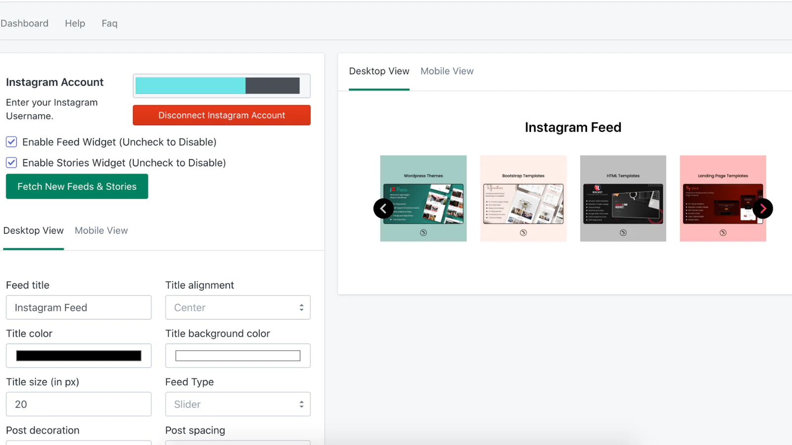 Latest Instagram Posts are displayed in a single row of images. The Feed, like stories and highlights, loads after your website, ensuring it does not affect your page load speed.