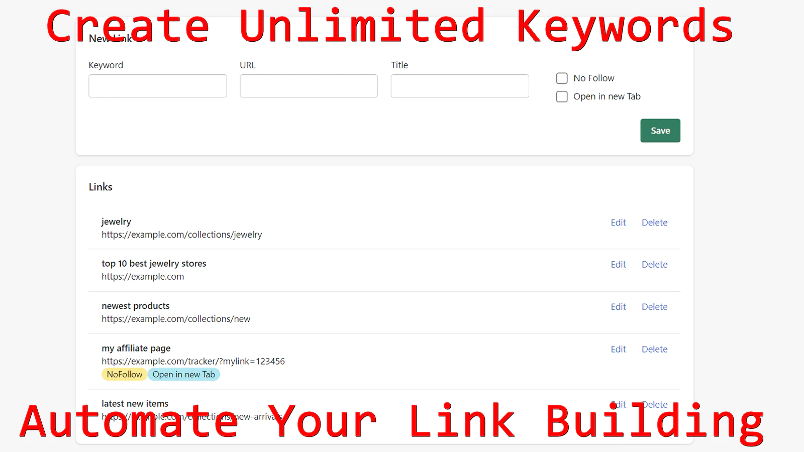 Save 10 Steps With Every Link : It takes 10 individual steps to create just 1 link. Finding words, copy/pasting target URLs, writing SEO Titles, etc. It's time consuming.