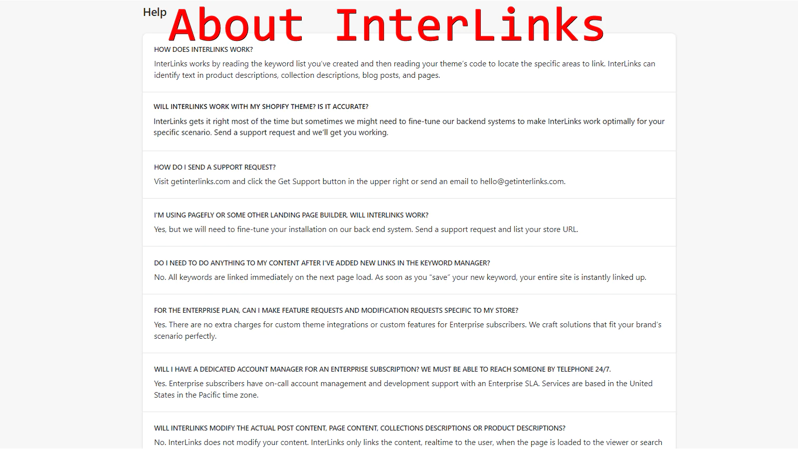InterLinks is a keyword link management platform that saves you time by automatically linking text inside your site's pages, posts, products and collections to target URLs that you specify. Good link flow keeps customers on your store longer. Hand-linking blog posts and pages is repetitive and time-consuming. InterLinks automates this for you.