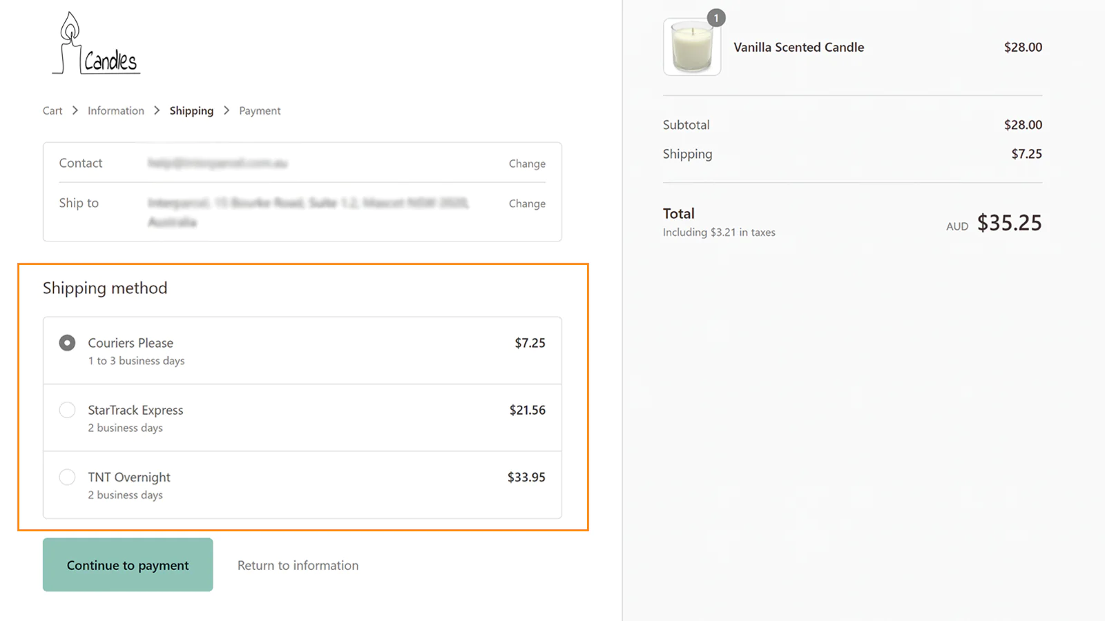 Choose from the best prices, and show your customers how much they can save on shipping with live shipping rates and estimated delivery times at checkout. Some of our courier partners include: Courier Please, StarTrack, DHL, UPS, Allied, Aramex, Bonds, Direct Courier, Hunter Express, Parcel Point, TNT, Northline...