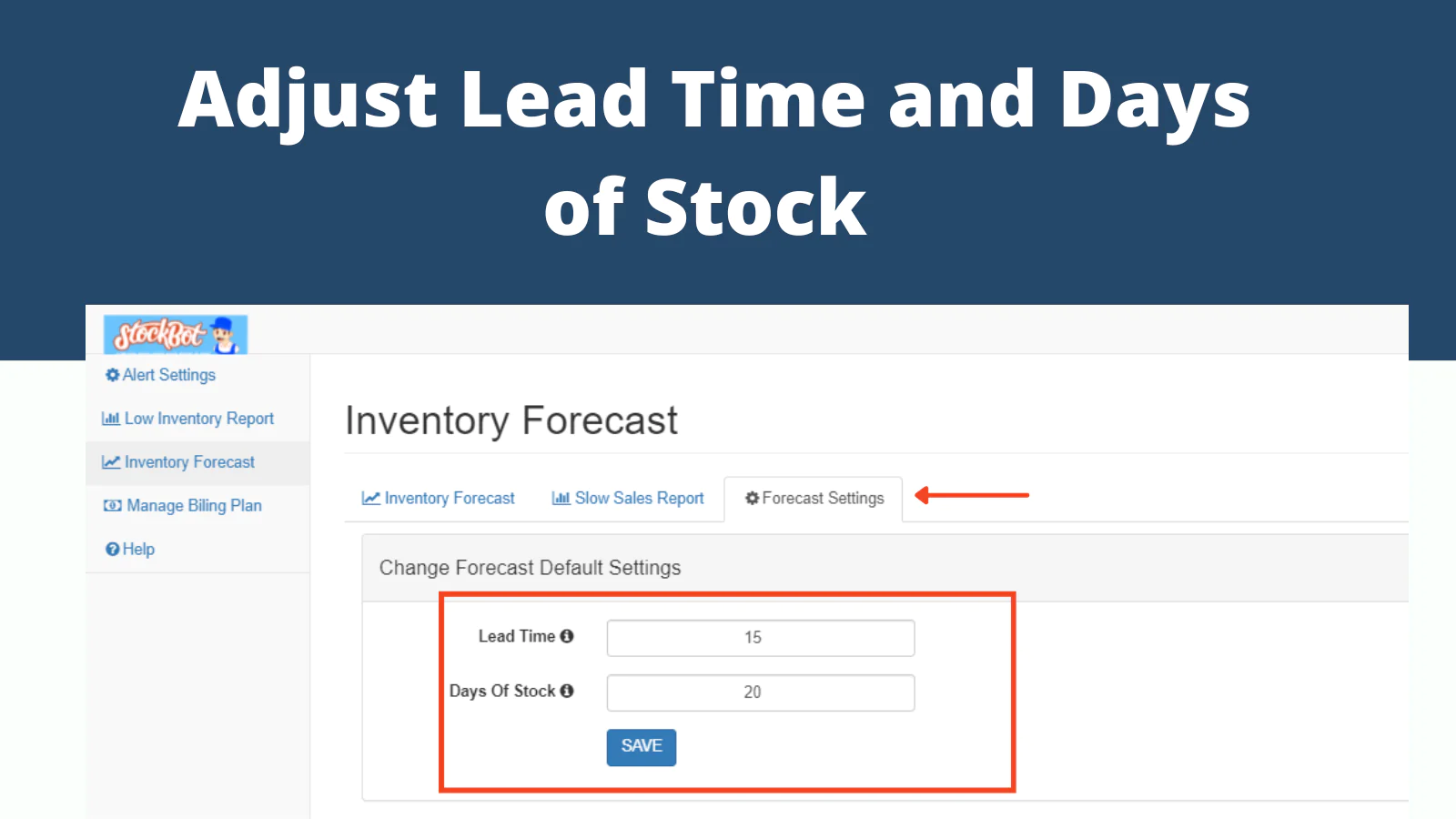Identify slow-moving products: Stockbot's Forecasting plan also identifies slow-moving items in your store so you can take action to free up cash tied up in unsold merchandise.