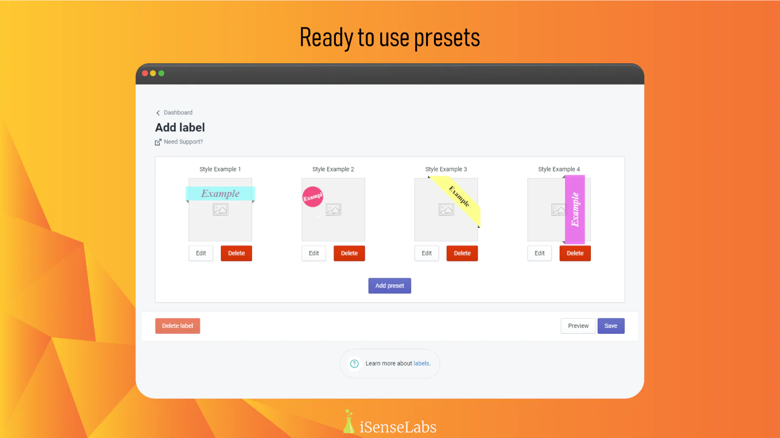 Note: The app comes with four pre-installed label presets ready to go. You just have to assign them to a product/products, and you will be all set.