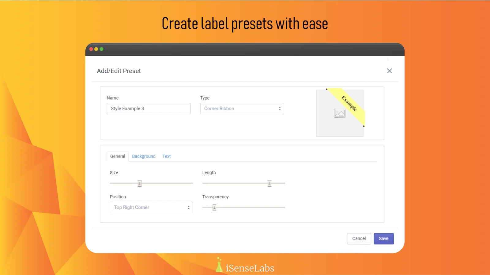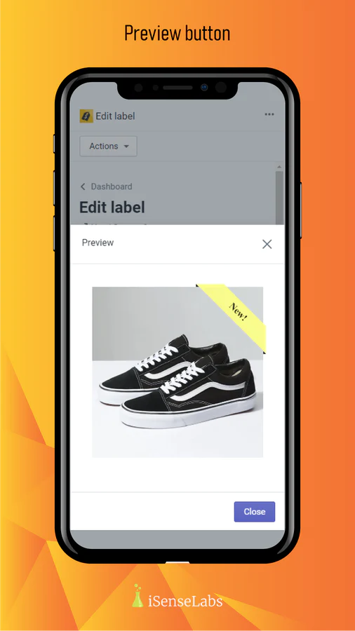 Preview Option : Ability to check how the label will look like on a product image before saving the changes
