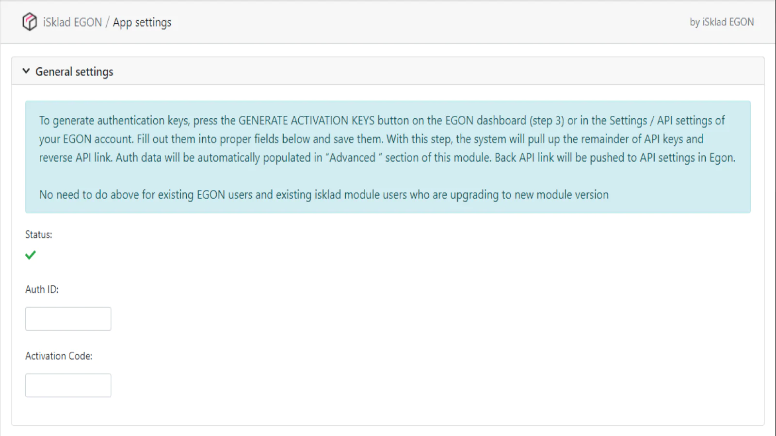 To fully connect this app to your iSklad fulfillment service account, you just need to generate keys, which you will enter in this app after installing.
