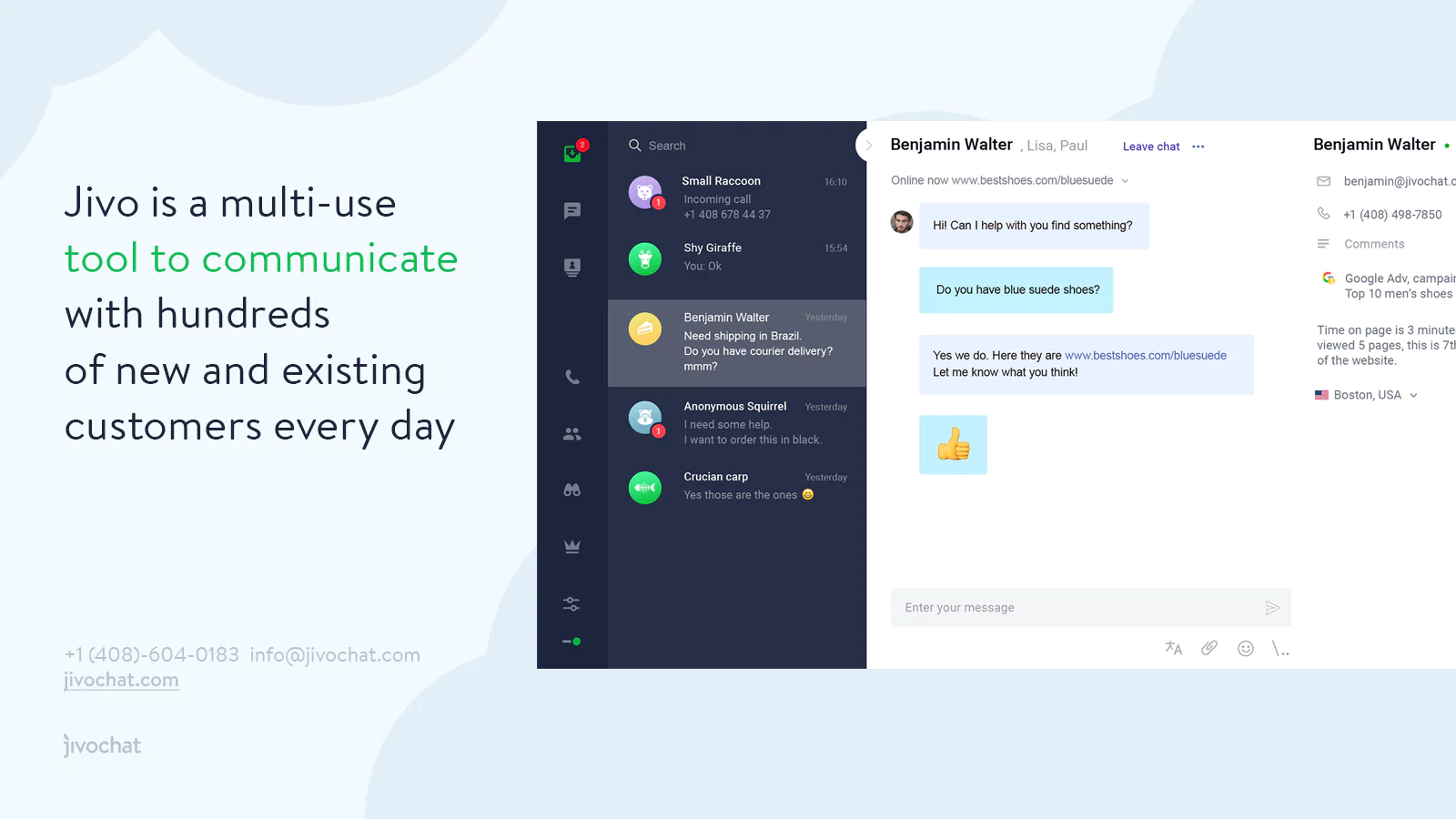 Jivo is an omnichannel business messenger that is tailored for e-commerce websites.