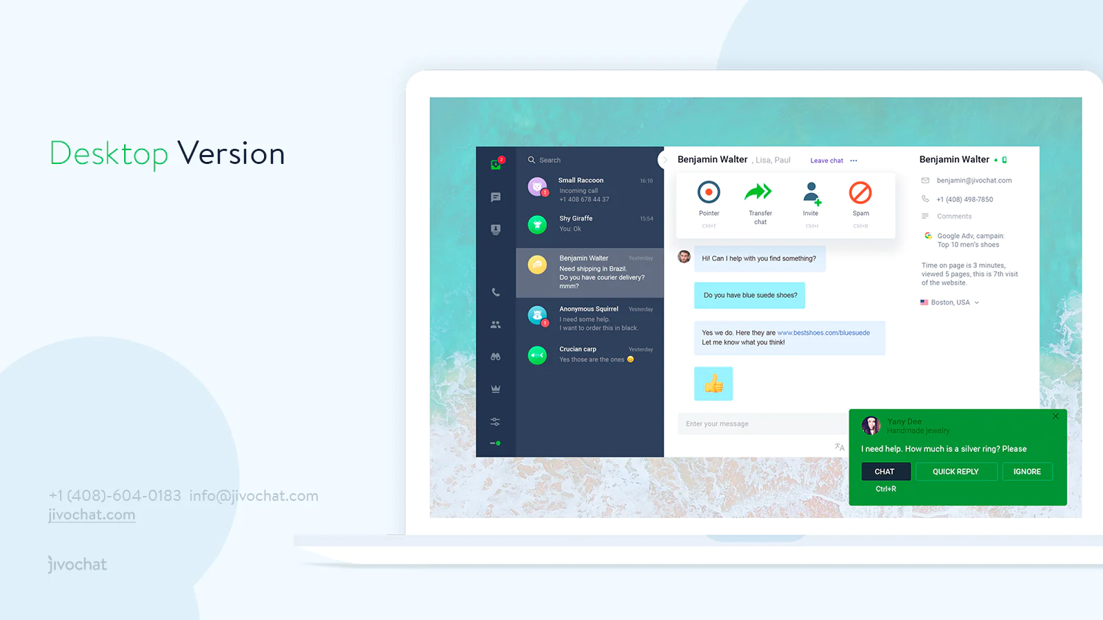 Multiplatform: Desktop, Mobile or Web version - choose the Jivo app that suits your needs
