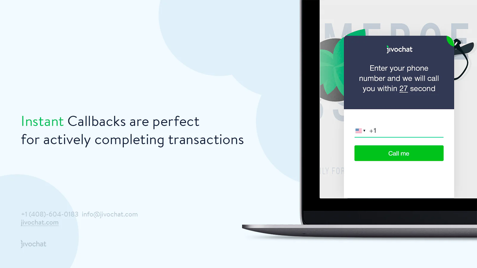 Instant callbacks for visitors: Blow your customer’s minds by calling them back in less than 27 seconds.