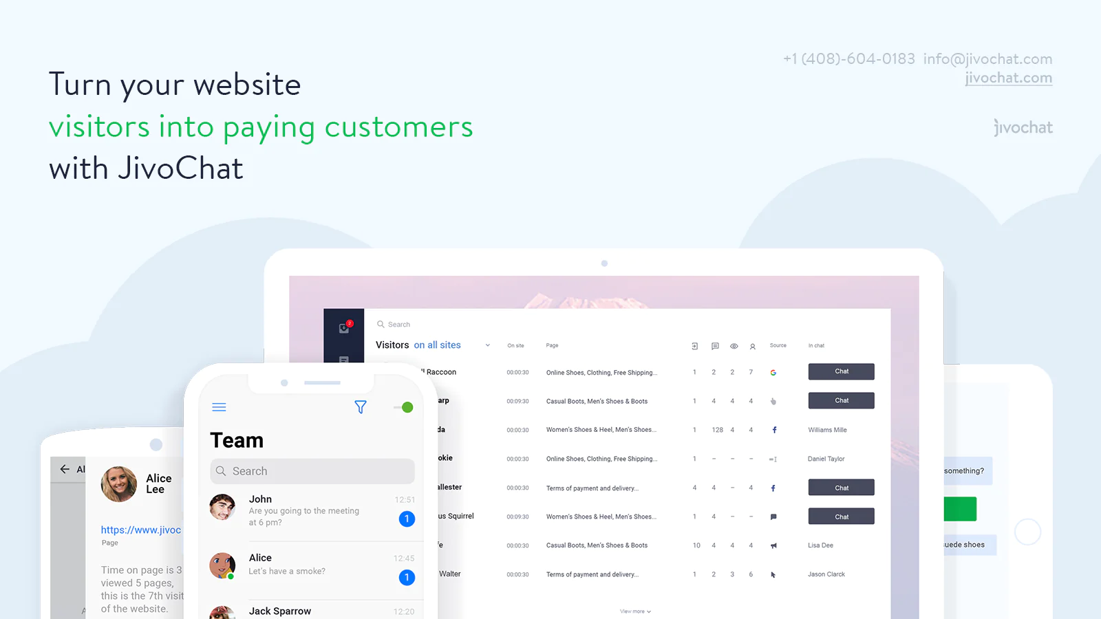 Easy to setup and easy to use : We keep things simple for you and your team. 3 minutes to install and you are all set. Desktop, mobile or web - Jivo has it all covered.
