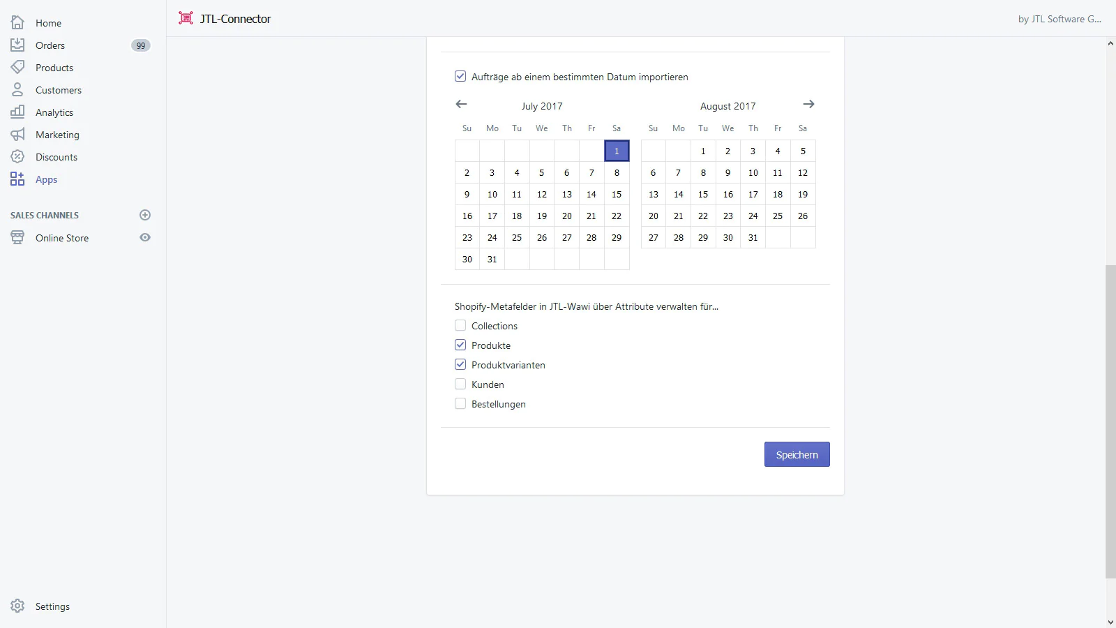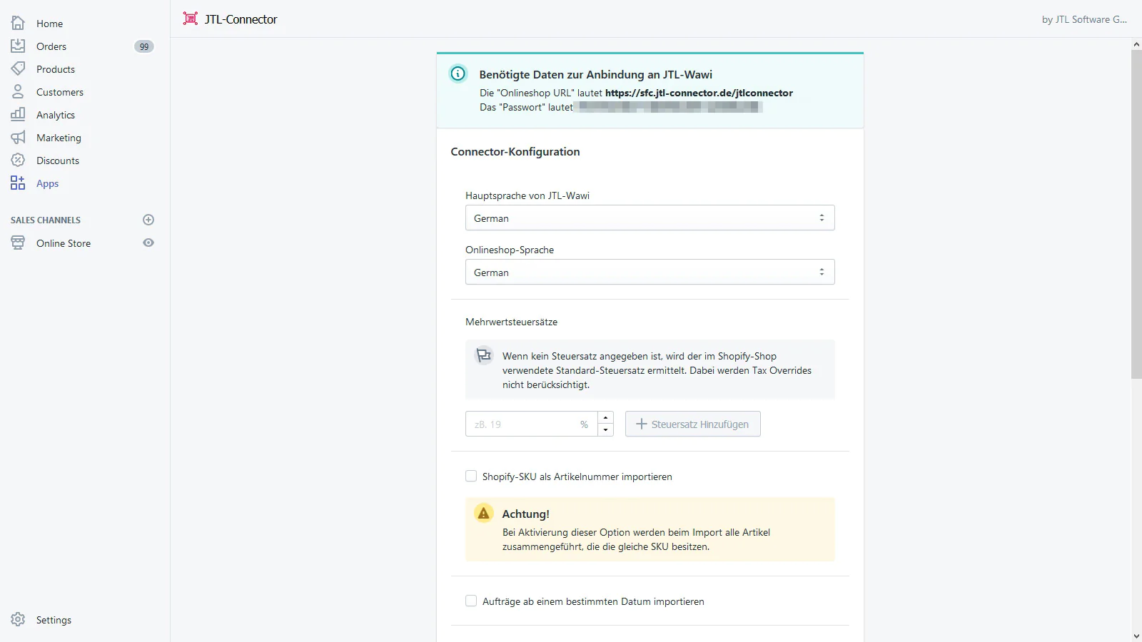 Hinweis: Um JTL-Connector für Shopify in vollem Umfang zu nutzen, wird JTL-Wawi-Version 1.3.15 vorausgesetzt.
