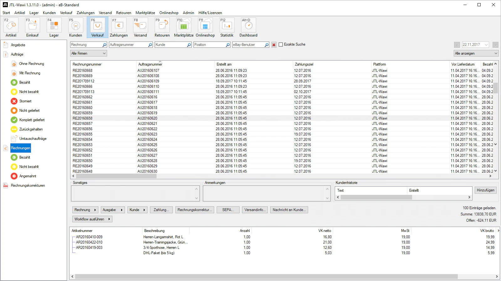 Ob Einkauf, Verkauf, Lagerverwaltung, Versandabwicklung, Retoure: Tägliche Aufgaben lassen sich komplett aus JTL-Wawi heraus steuern und automatisieren.
