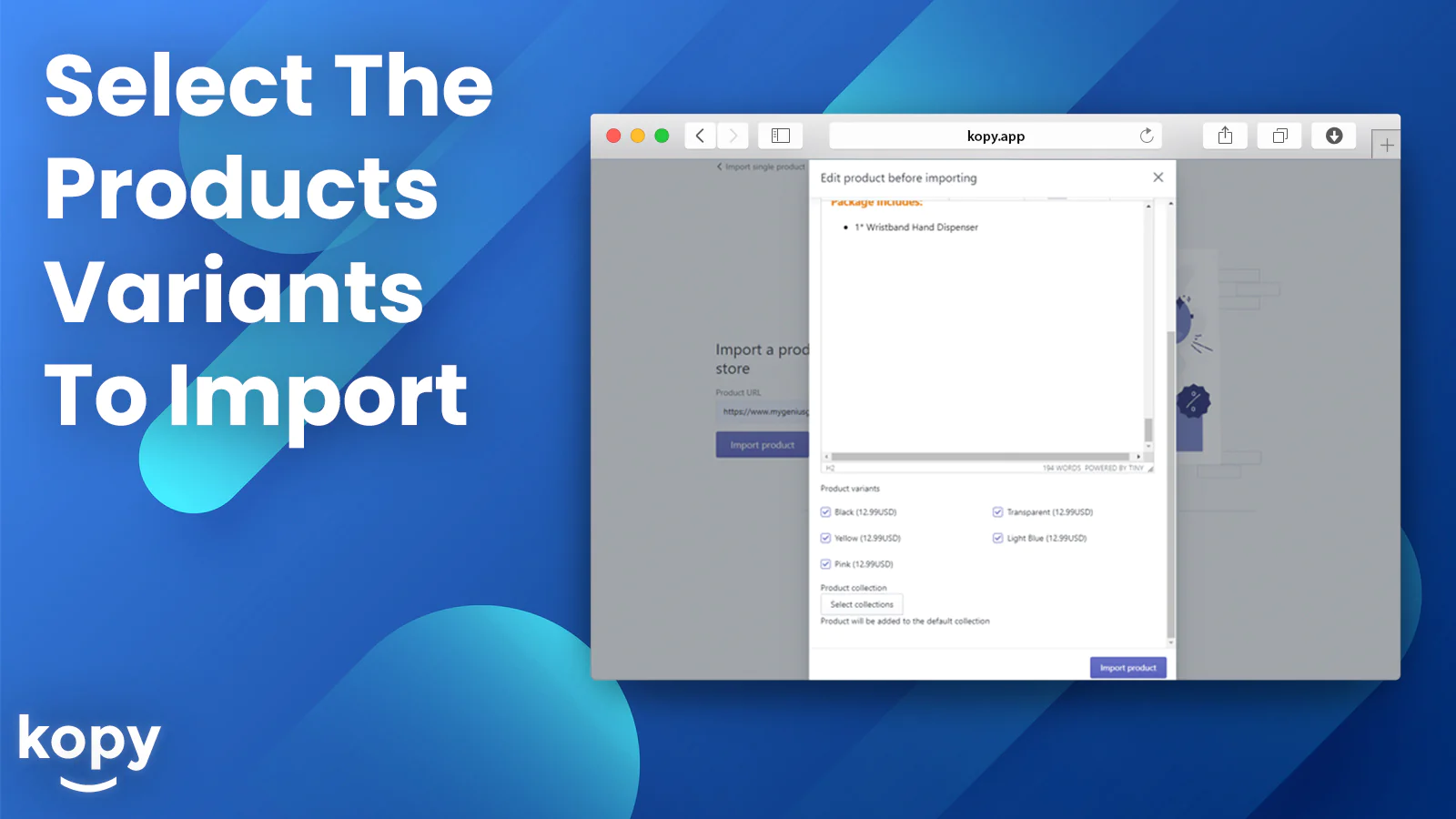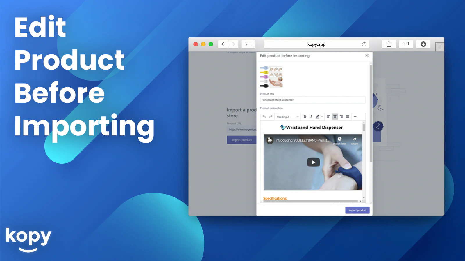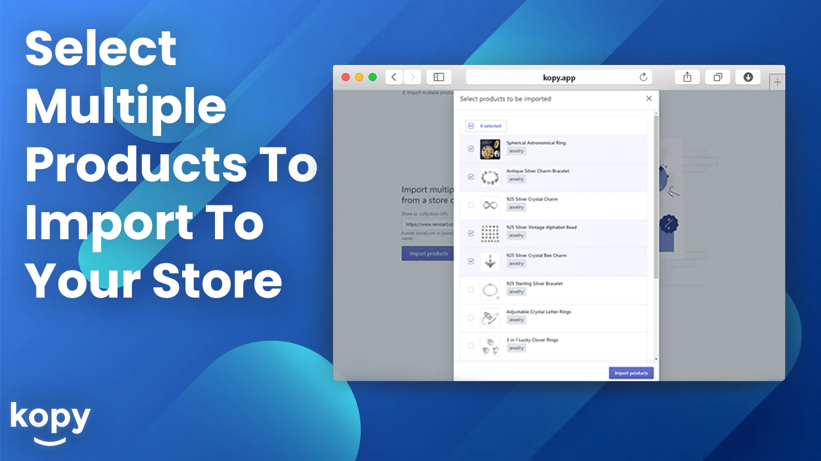 Kopy is an app that allows you to copy easily products from any Shopify store to your store in just 1 CLICK.