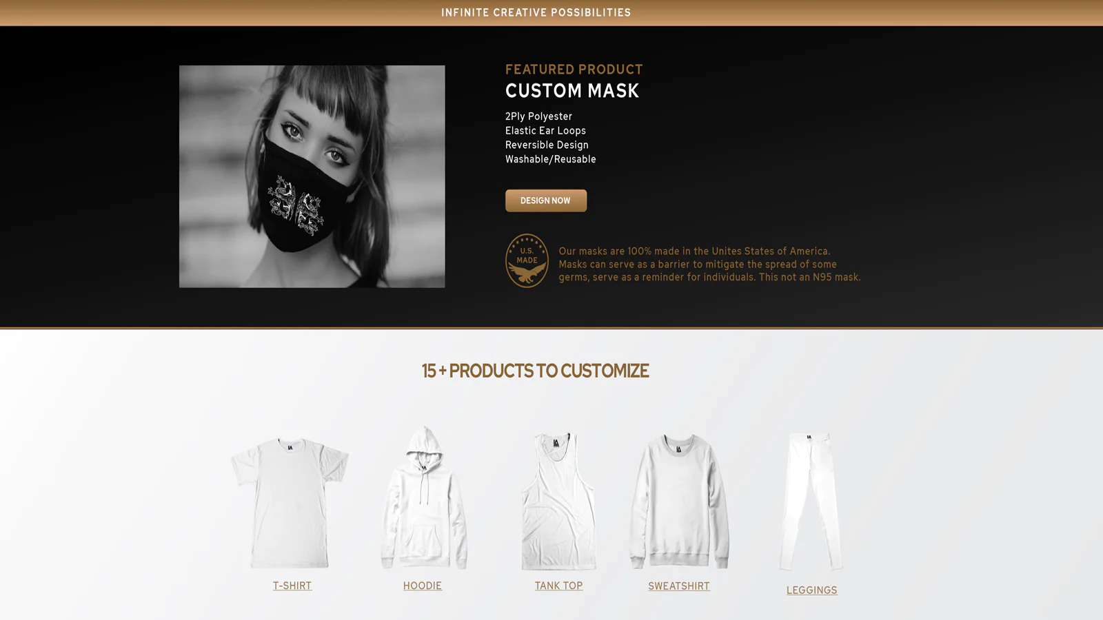 ON-DEMAND MASKS : Due to COVID-19 we have shifted our manufacturing to masks and face wear. Design and sell custom masks to help flatten the curve.