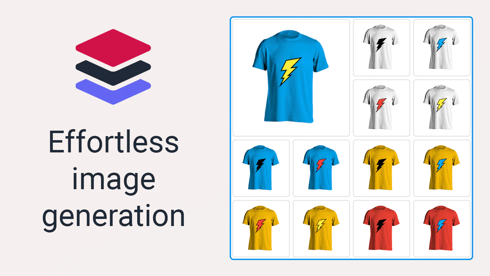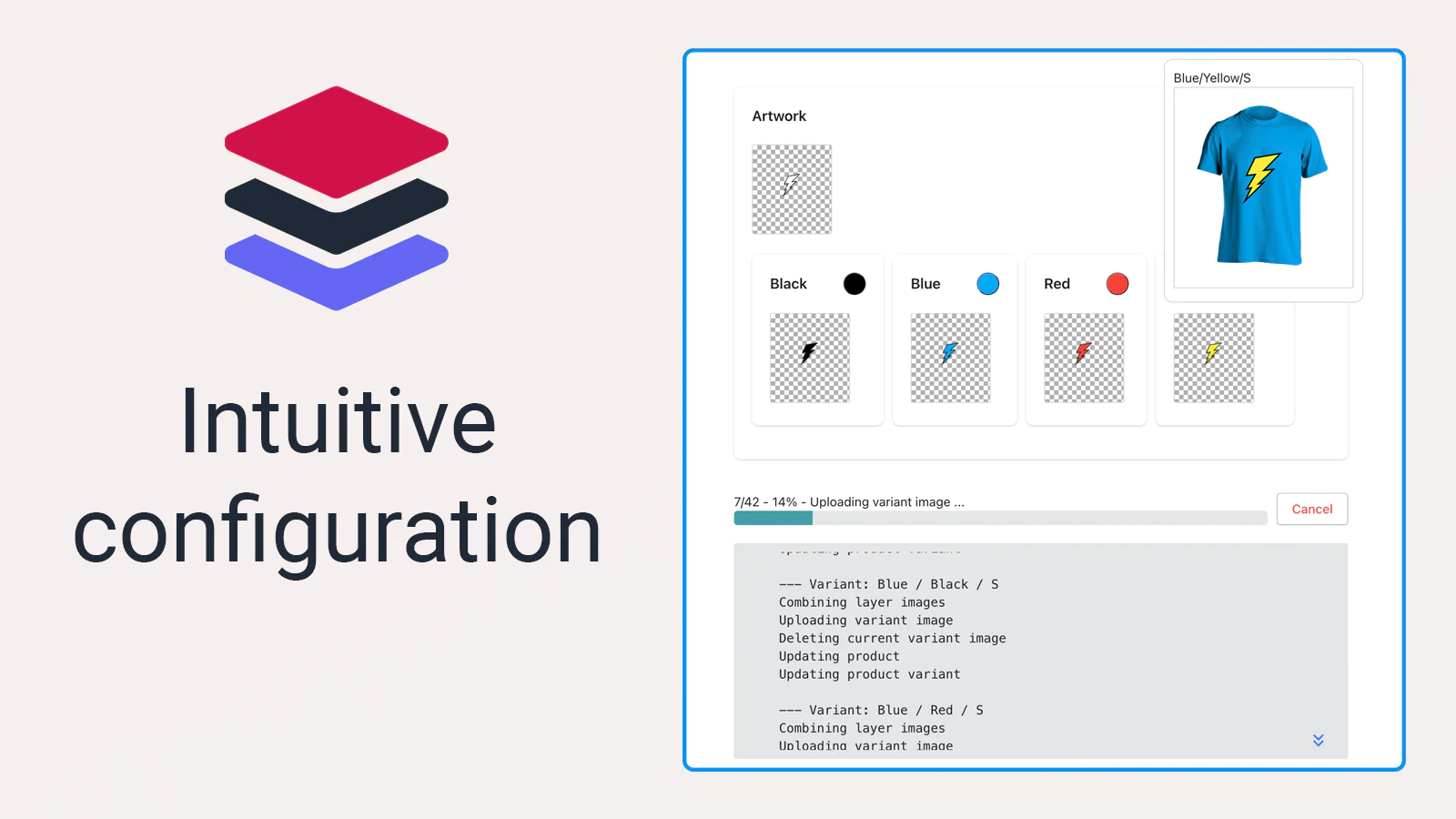 Instead of manually creating variant images and individually configuring them, you will only need to configure the separate layers and the app will combine them and assign them to the corresponding variant, thus saving you time and effort.