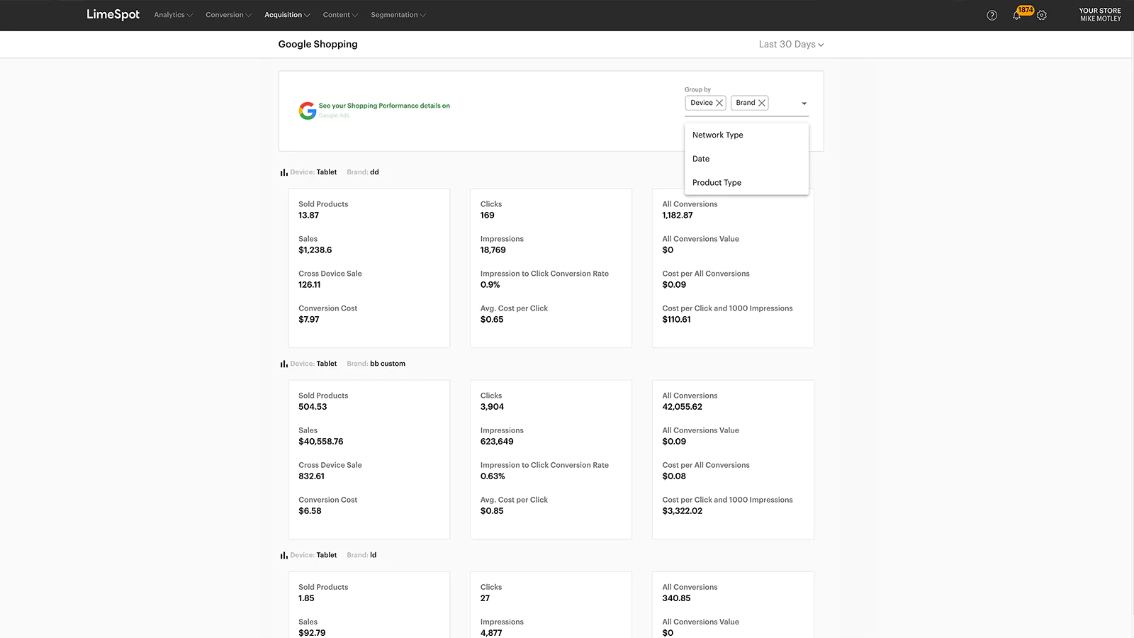 LimeSpot tracks all product/variant additions and updates in your online store and automatically synchronizes them onto your Google Merchant Center feed & Shopping Campaigns.