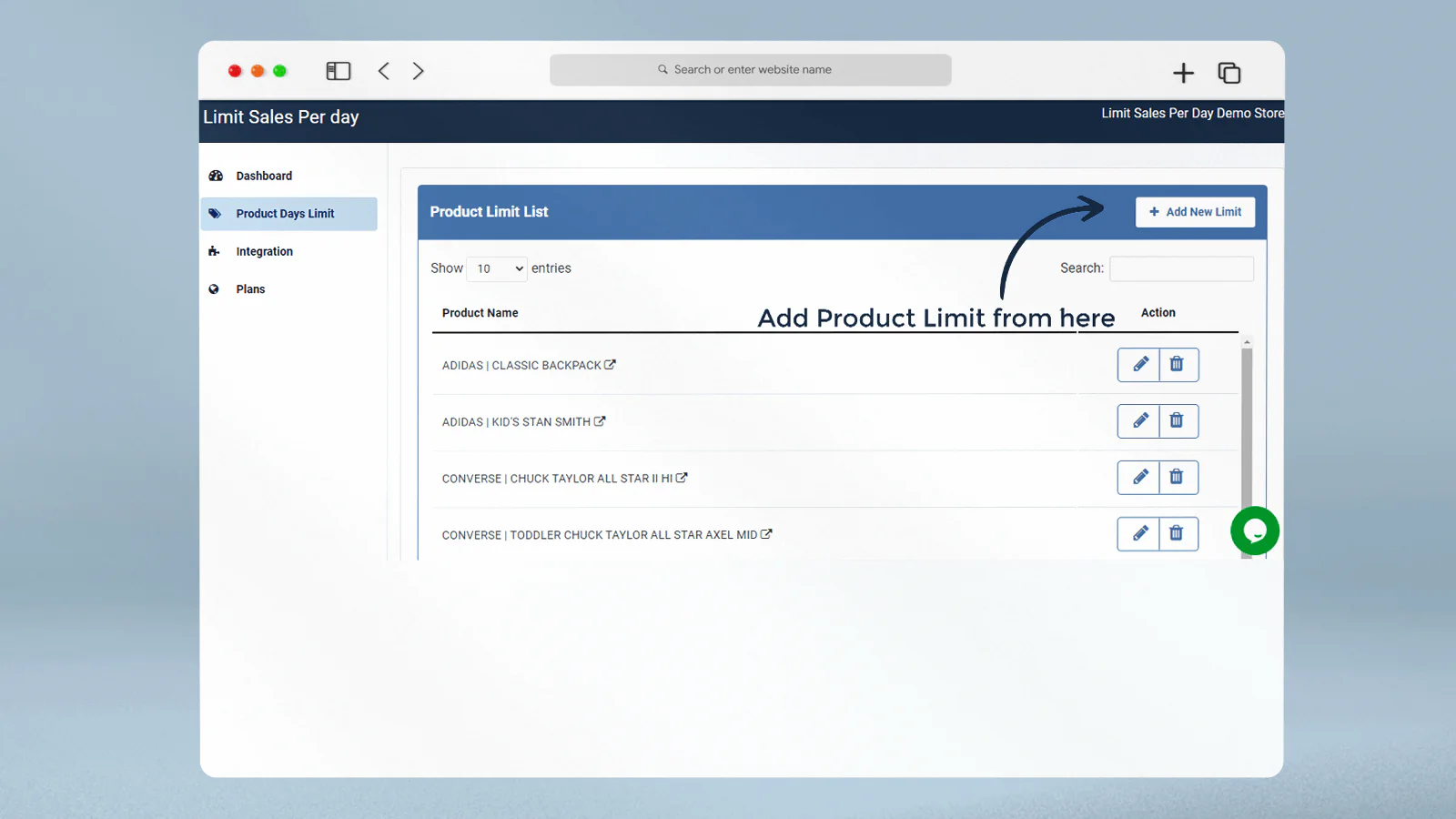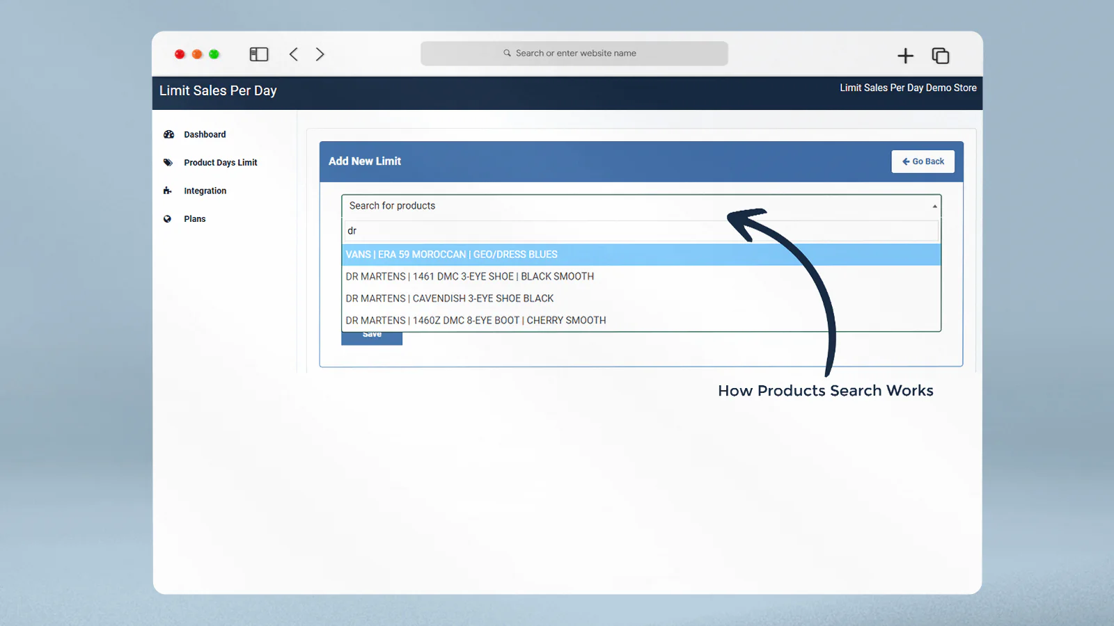 Search Products : Find products using powerful search functionality to set limit on them. Get the products and set the limit easily.