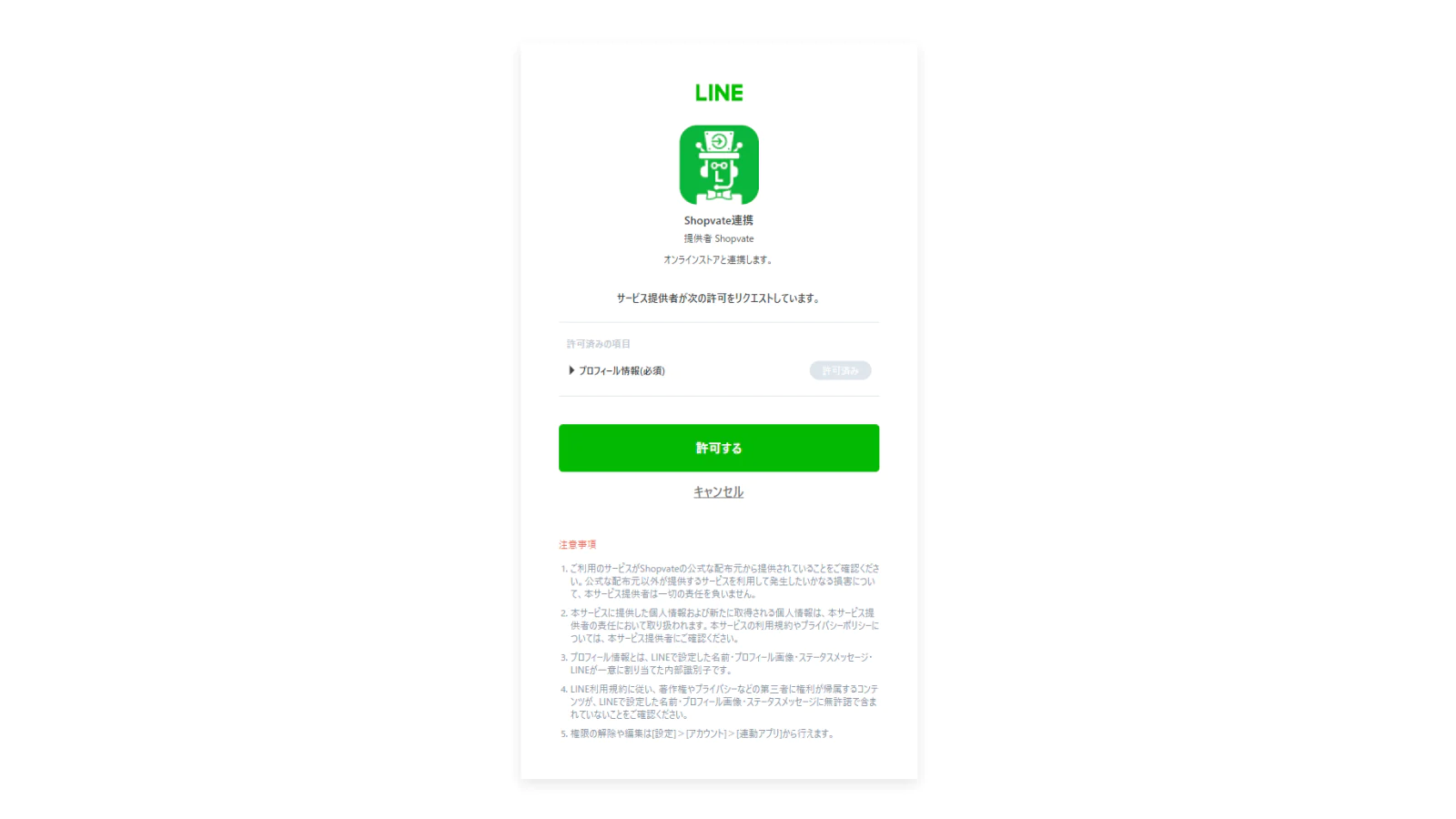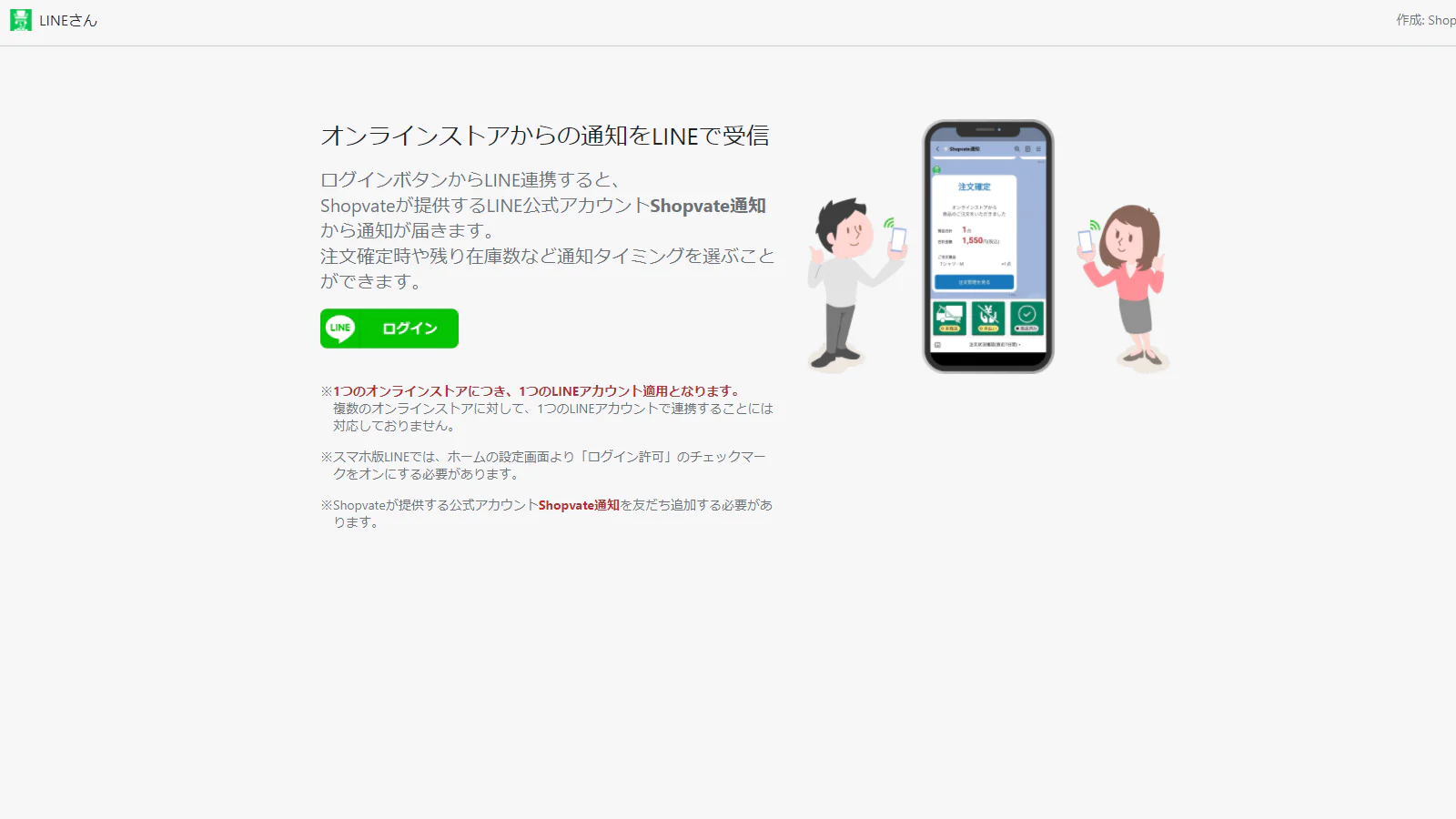 Shopvateが提供するLINE公式アカウント「Shopvate通知」を友だち追加する必要があります。