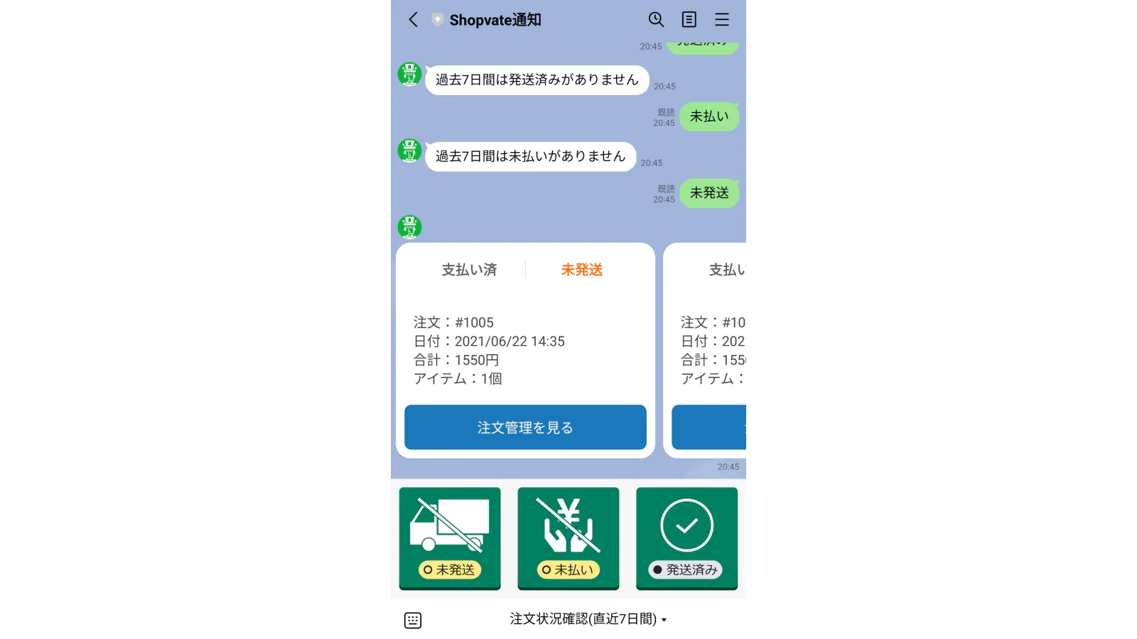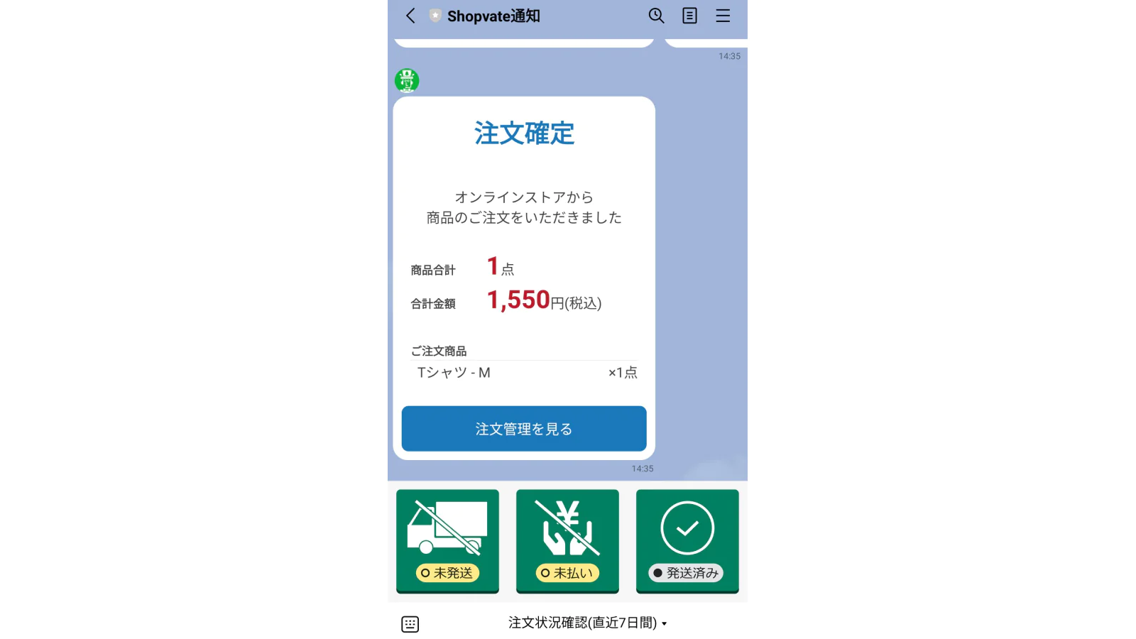 LINE公式アカウントからの注文管理は直近7日間の注文を最大12件までの表示となります。
